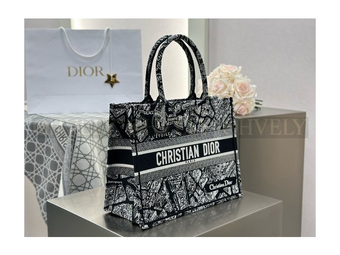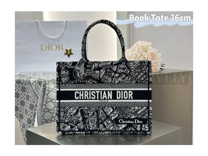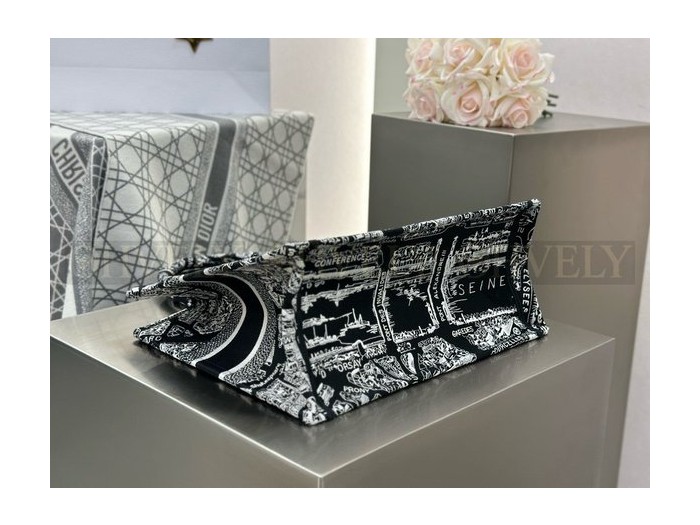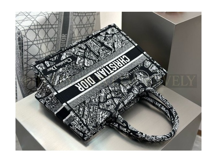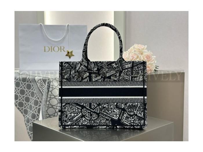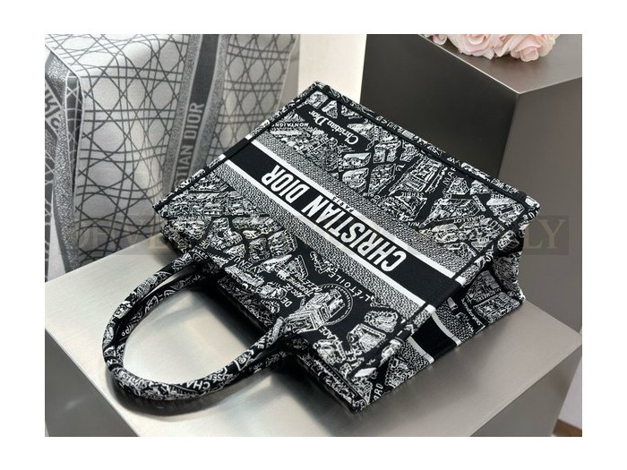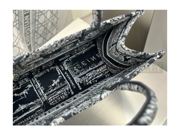 • 디올 플랜 드 파리 네이비 자수 북 토트백 미디움