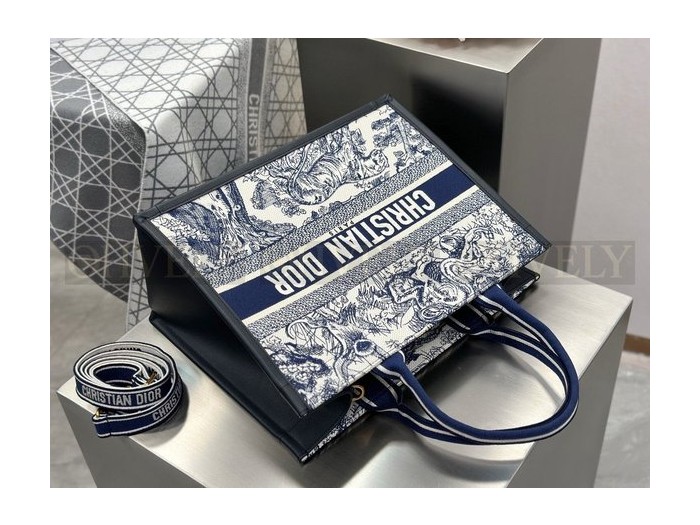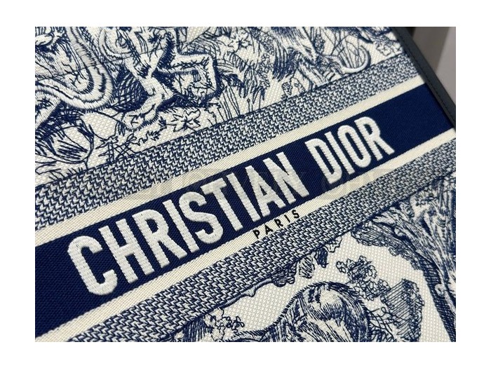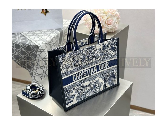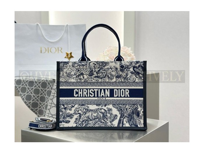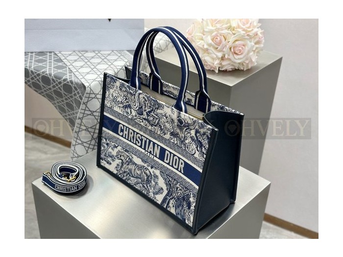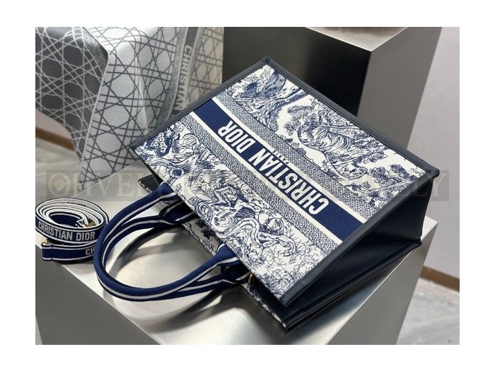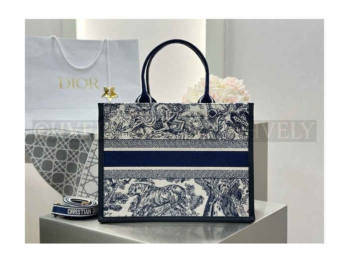 • 디올 트왈 드 주이 화이트 네이비 북 토트 스트랩백 미디움