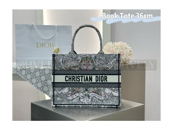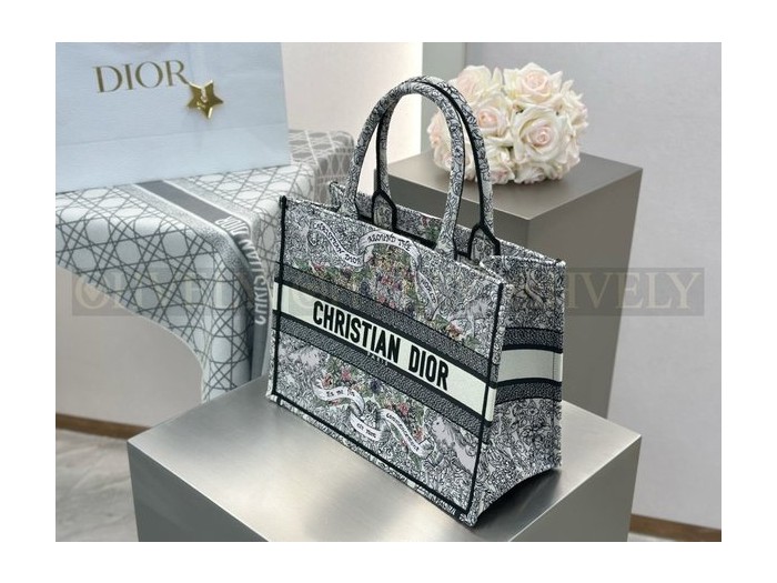 • 디올 어라운드 더 월드 모티프 자수 북 토트백 미디움