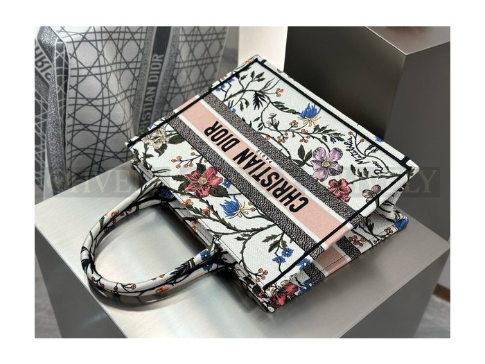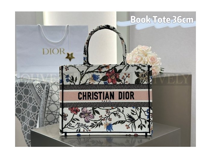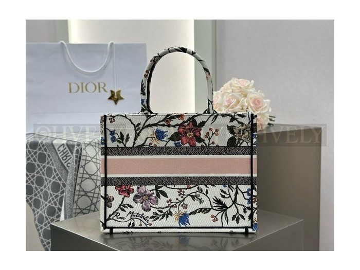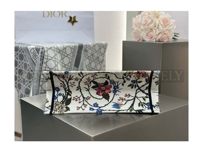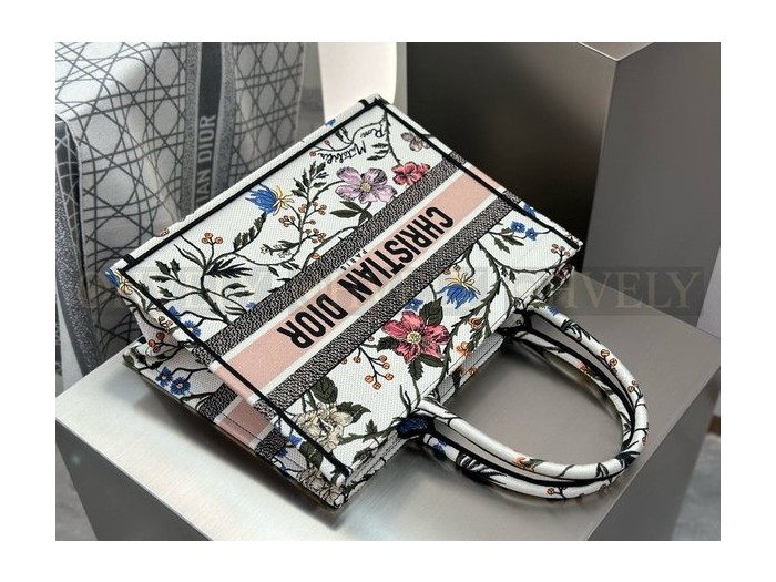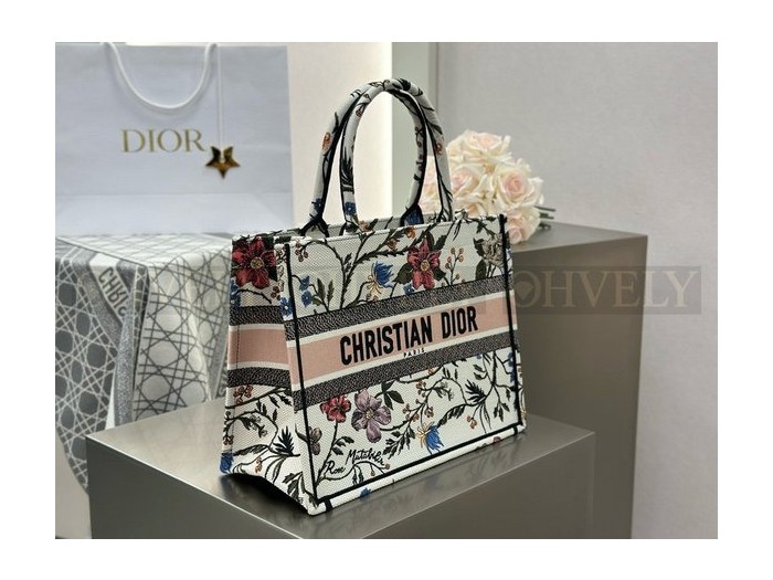 디올 빈티지 플라워 화이트 자수 북 토트백 미디움 > 디올