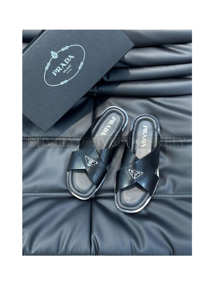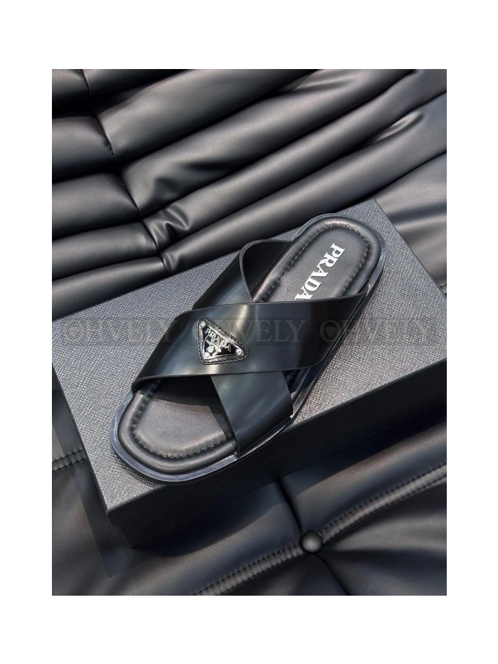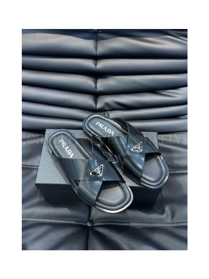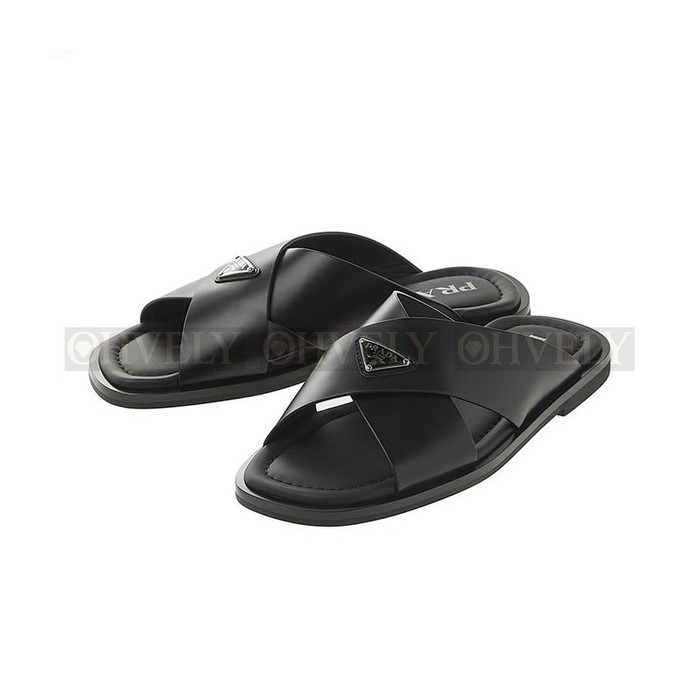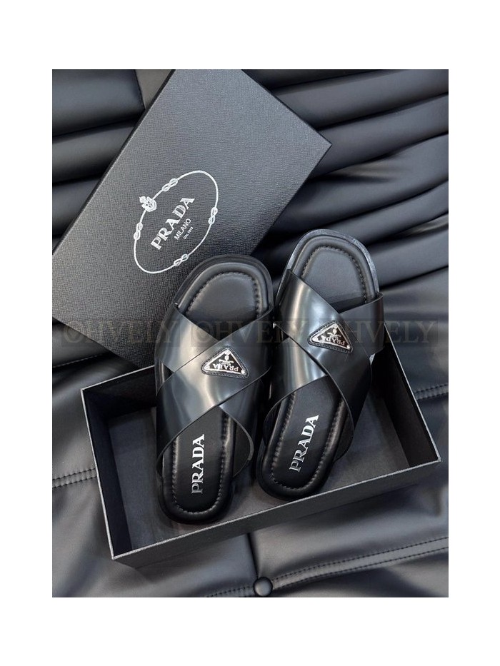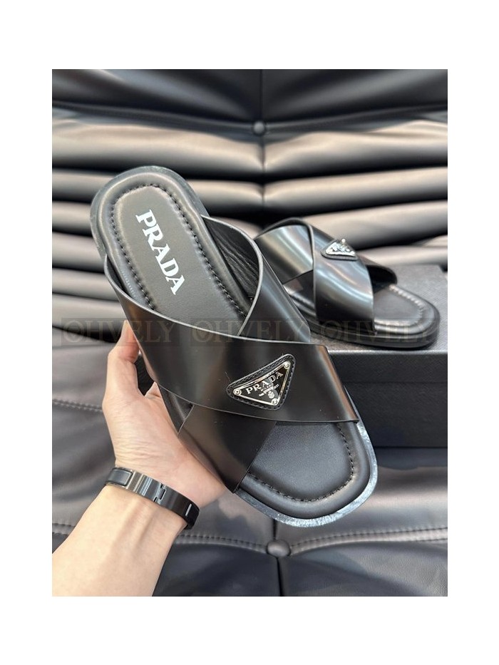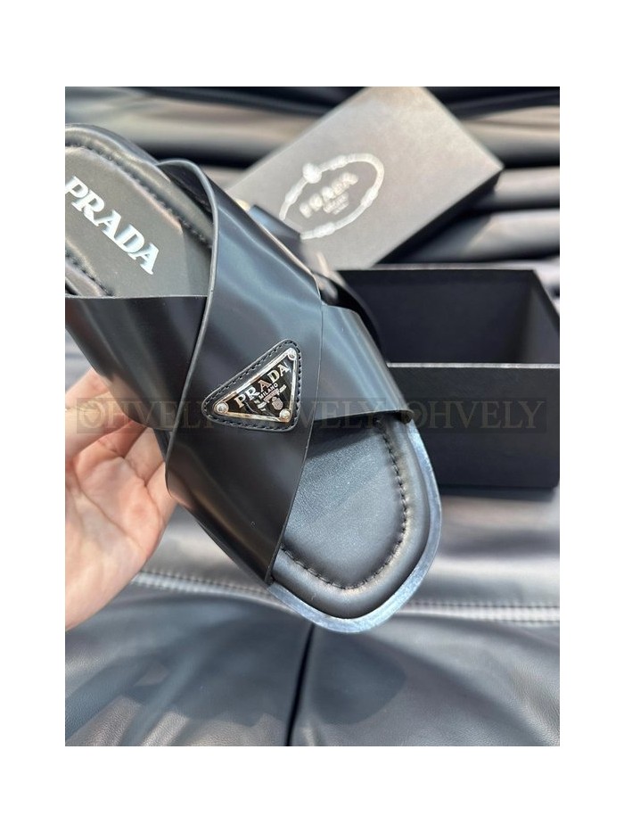 프라다 크로스 레더 블랙 샌들 > 프라다