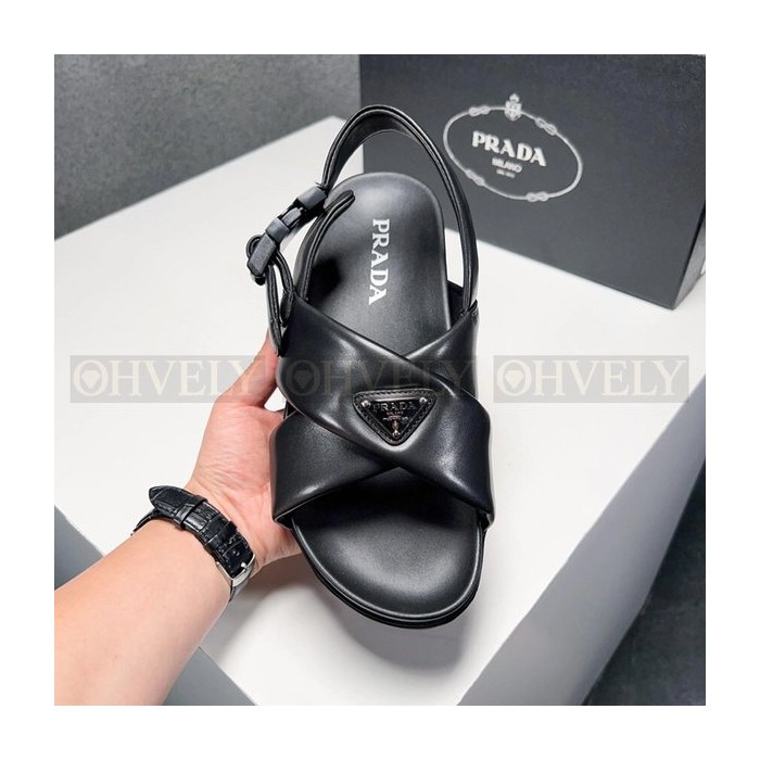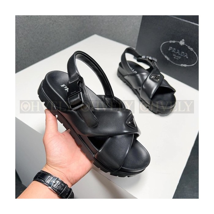 프라다 패딩 나파 크리스 크로스 샌들 > 프라다