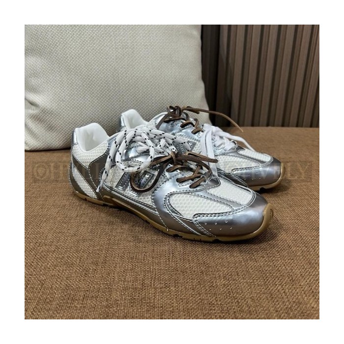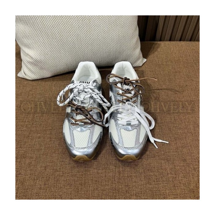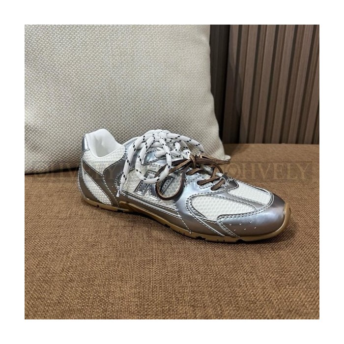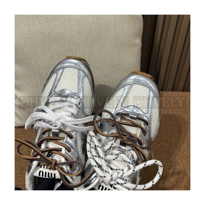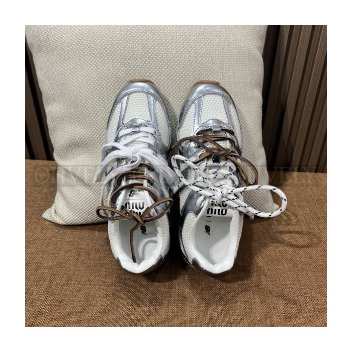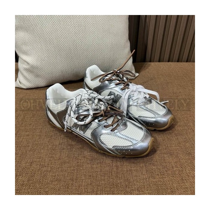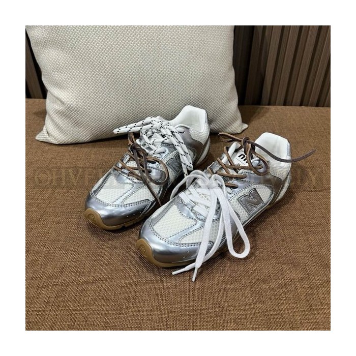 뉴발란스 x 미우 미우 530 SL 메탈릭 레더 앤 메쉬 스니커즈 실버