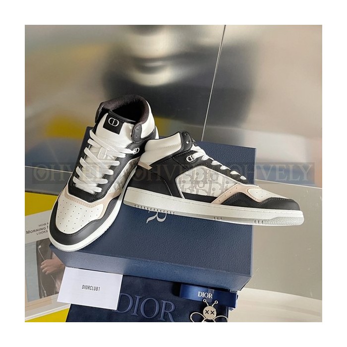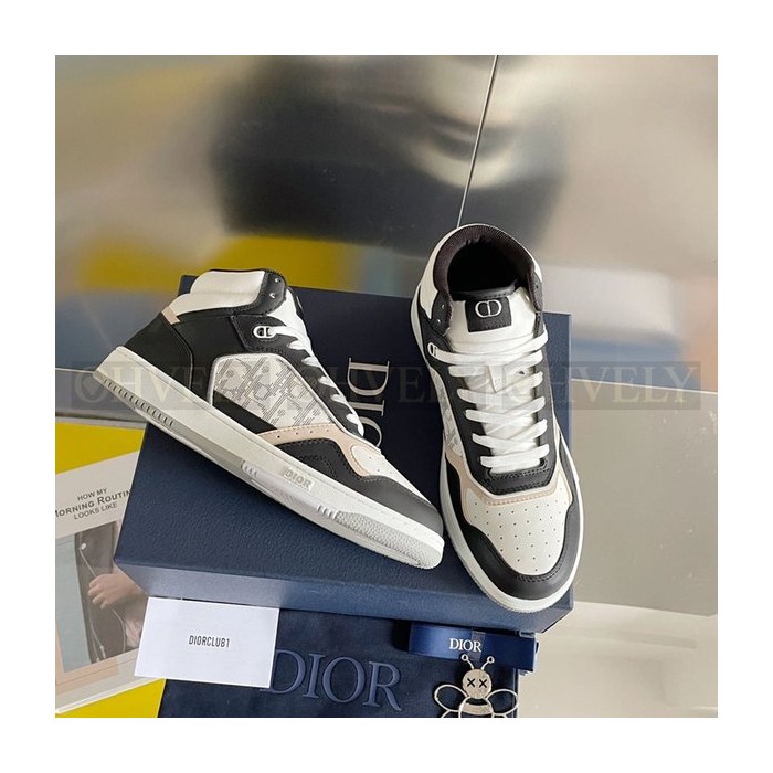 • 디올 B27 하이탑 스니커즈 스무스 카프스킨 & 오블리크 갤럭시 레더 블랙