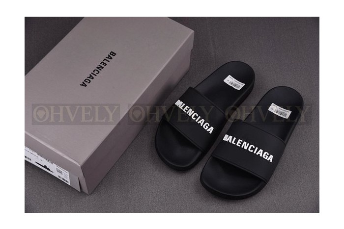 발렌시아가 블랙 화이트 풀 슬라이드 샌들