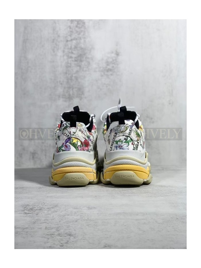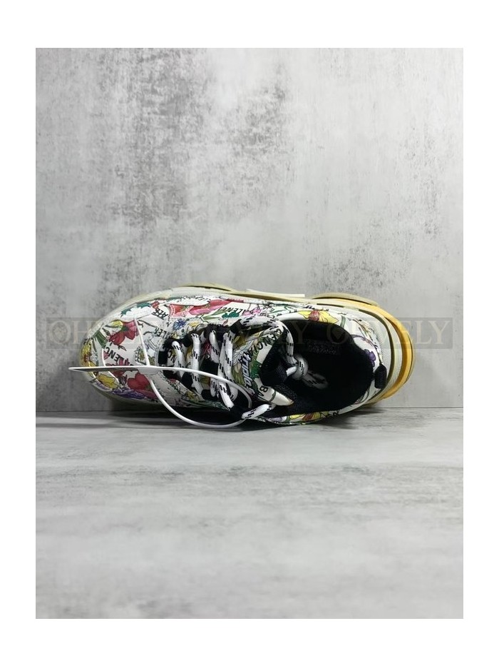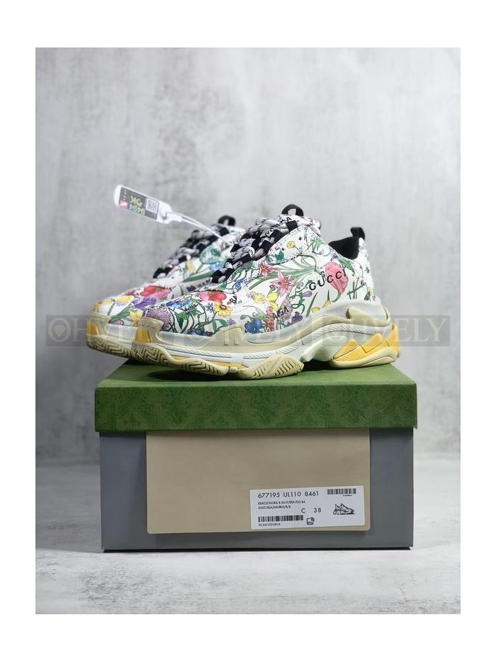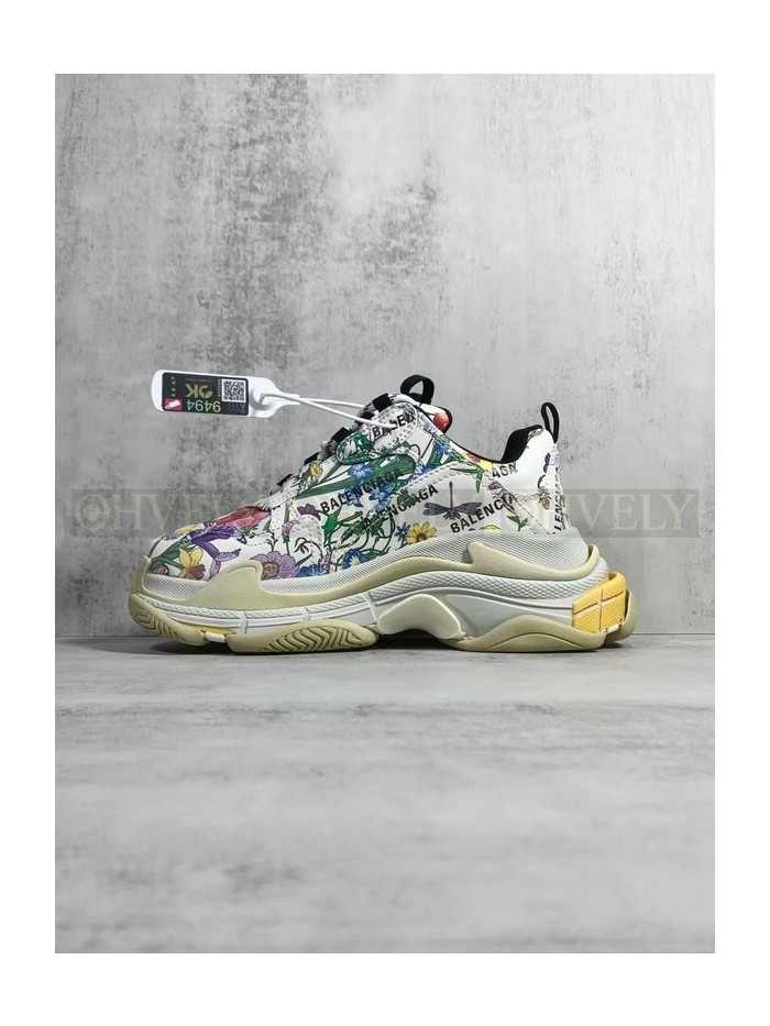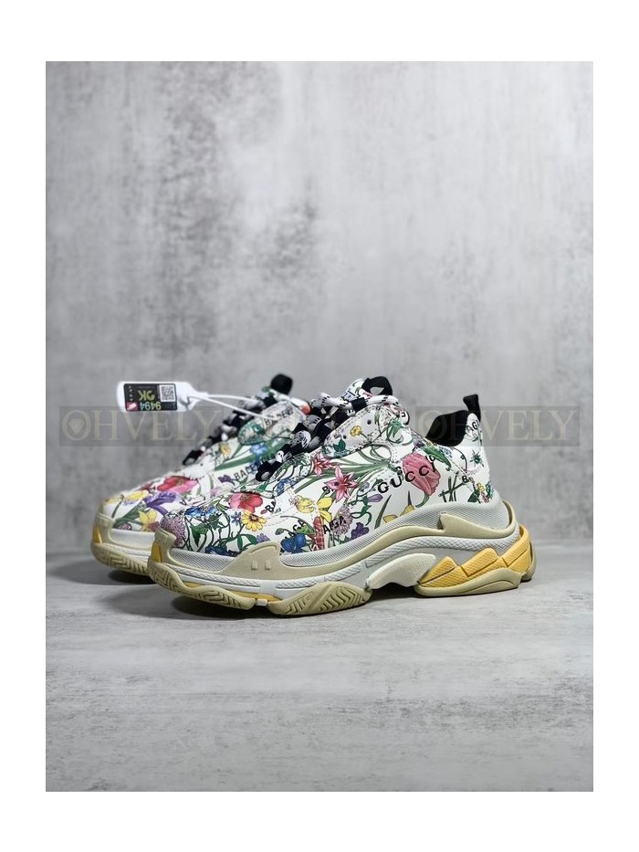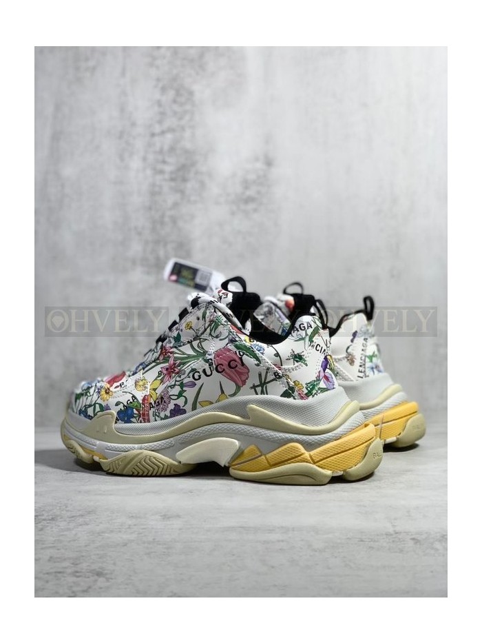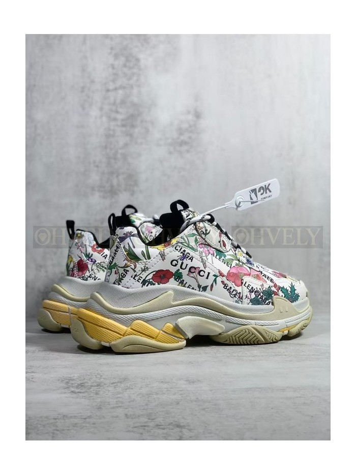 • 발렌시아가 x 구찌 해커 프로젝트 트리플 S 스니커즈 멀티컬러 레더 플로라 프린트 아이보리