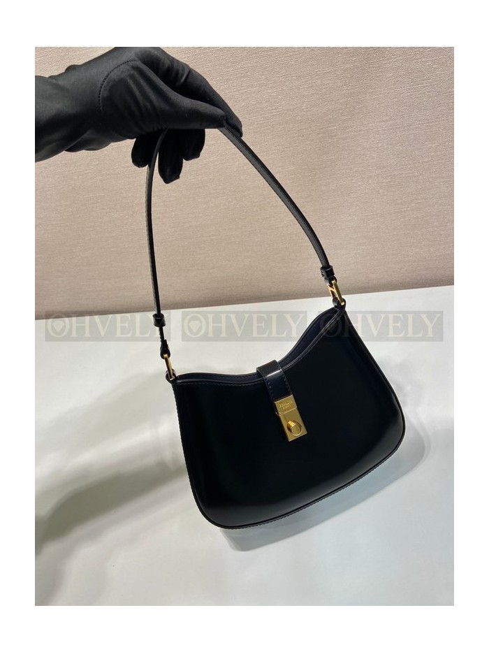 프라다 클레오 브러쉬드 레더 숄더백 클래스프 클로저