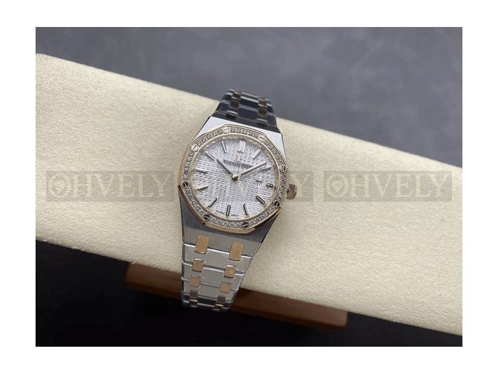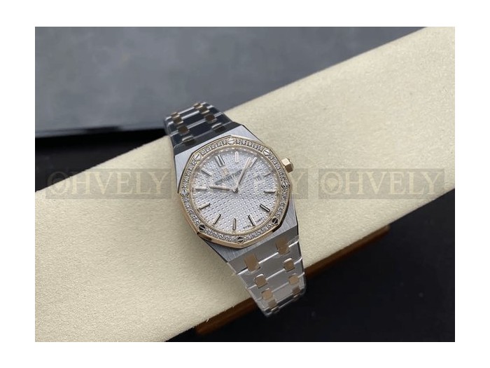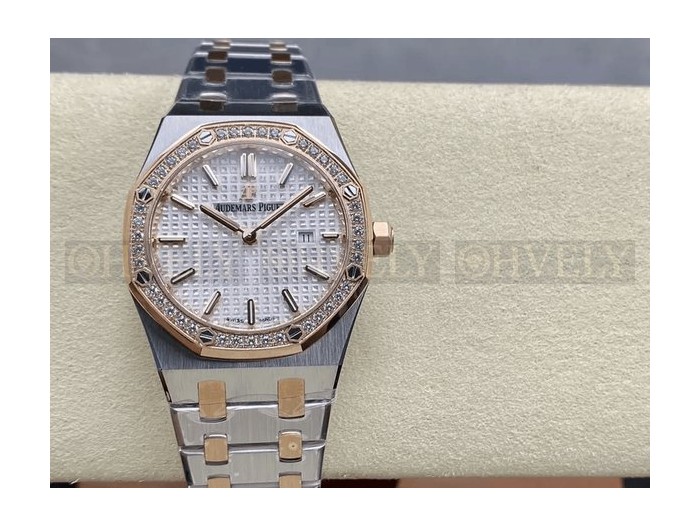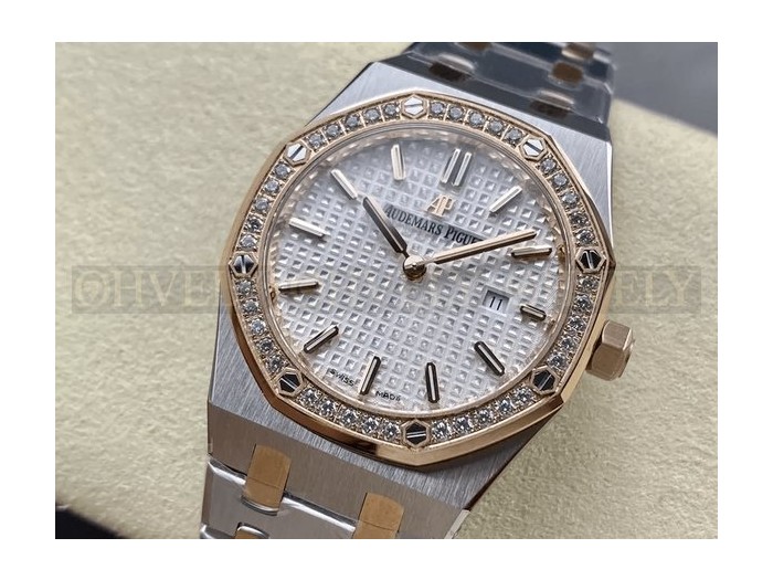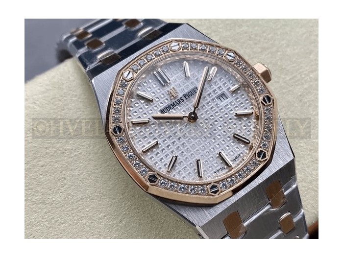 오데마피게 로얄오크 67651 흰판 로즈골드 콤비 다이아세팅 (33mm,쿼츠)