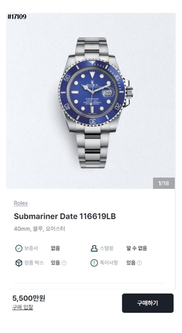 롤렉스 서브마리너 데이트 미드나잇 블루 오이스터 (리뷰5건)