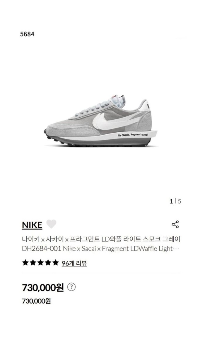 나이키 X 사카이 프라그먼트 LD와플 그레이 > 남성 슈즈