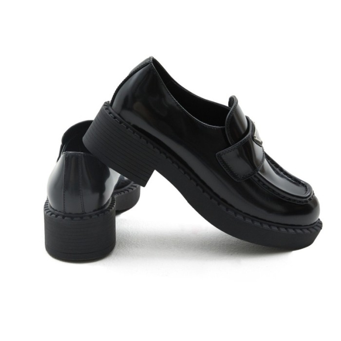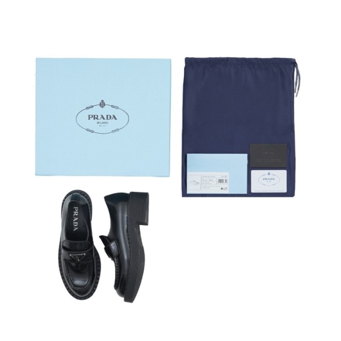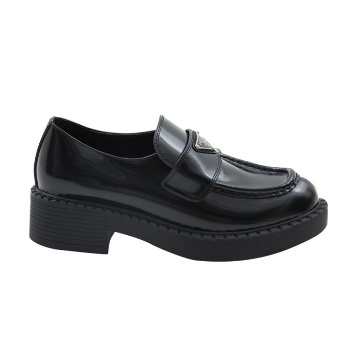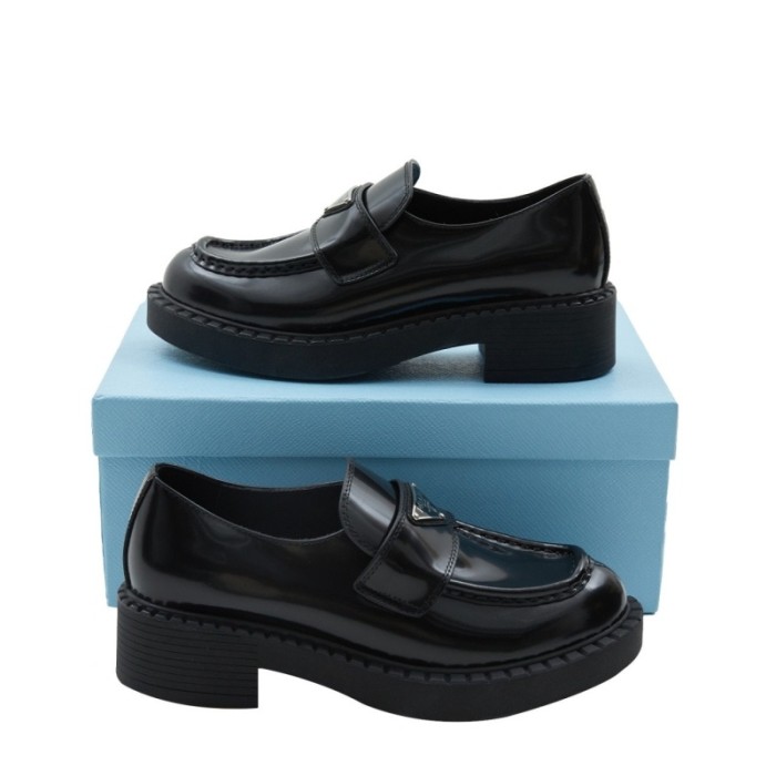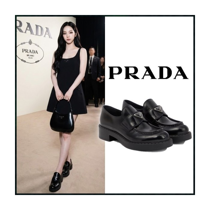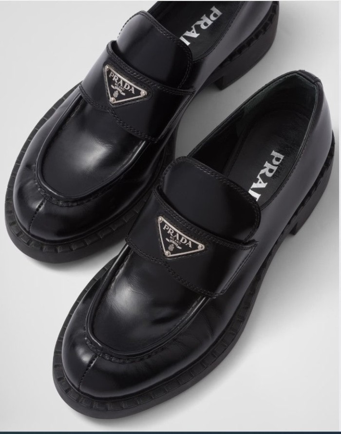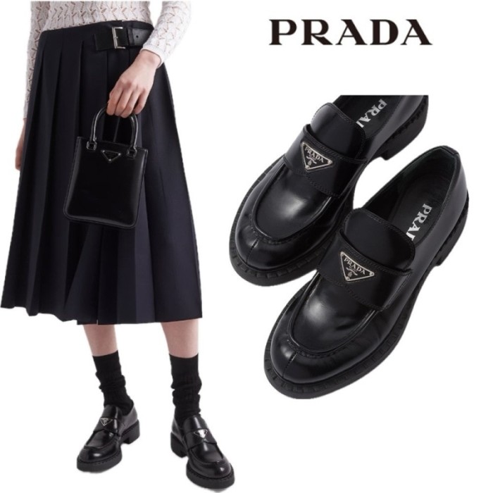 프라다 여성 초콜릿 브러시드 가죽 로퍼