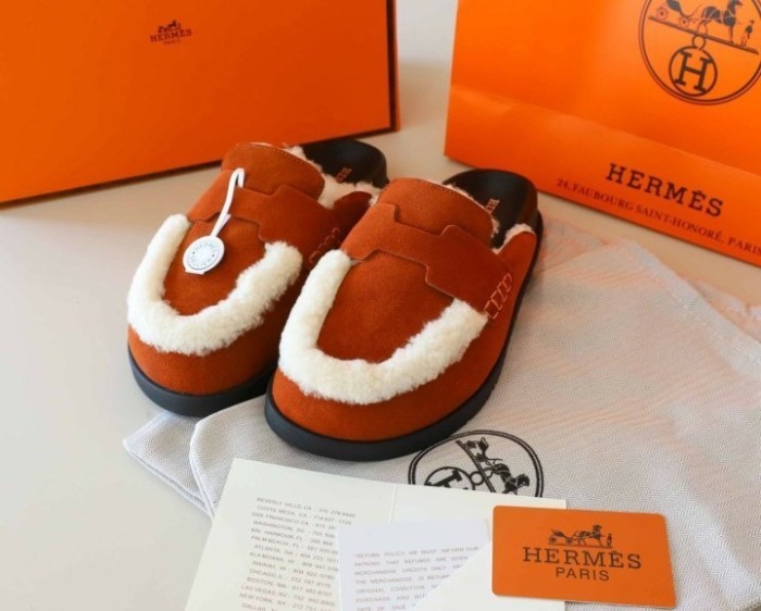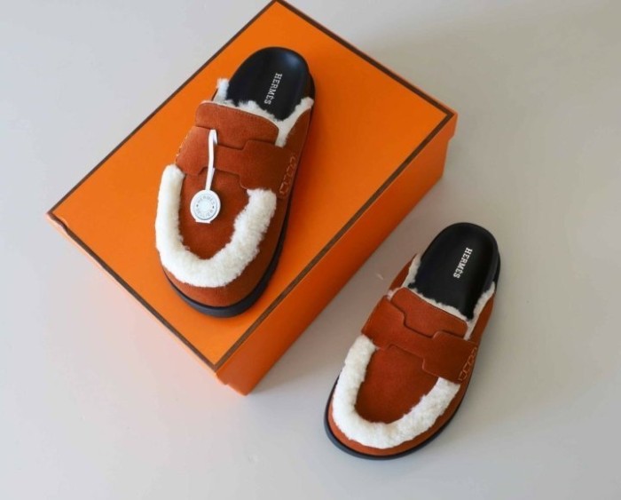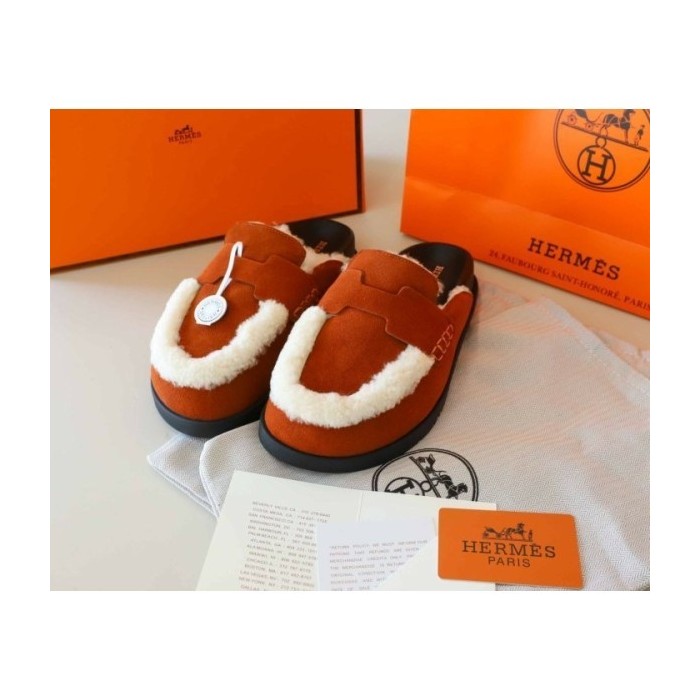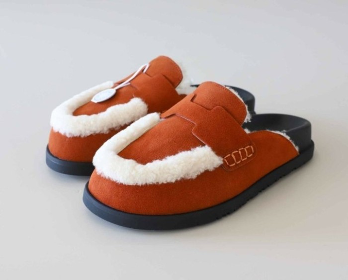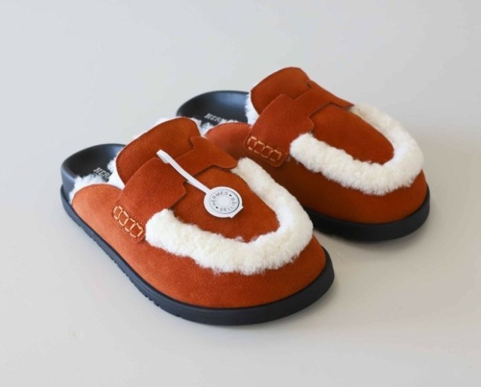 에르메스 스웨이드 고(GO) 뮬 슬리퍼