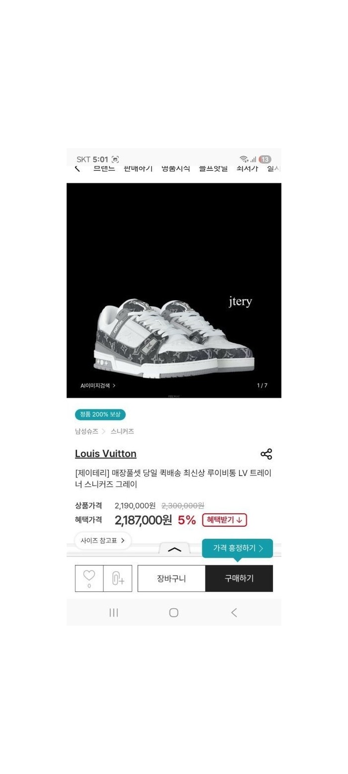 루이비통 LV 트레이너 스니커즈 - 그레이 > 루이비통