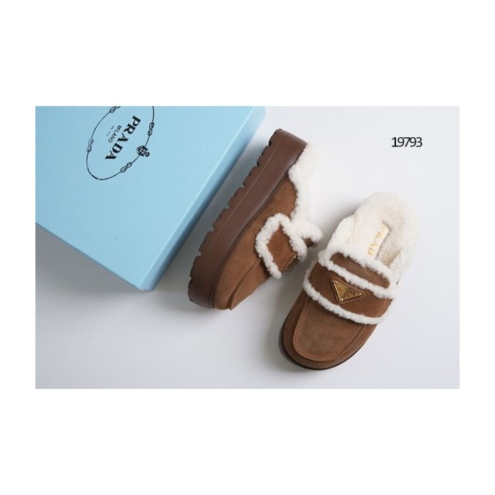 프라다 시어링 트림 플랫폼 뮬 로퍼
