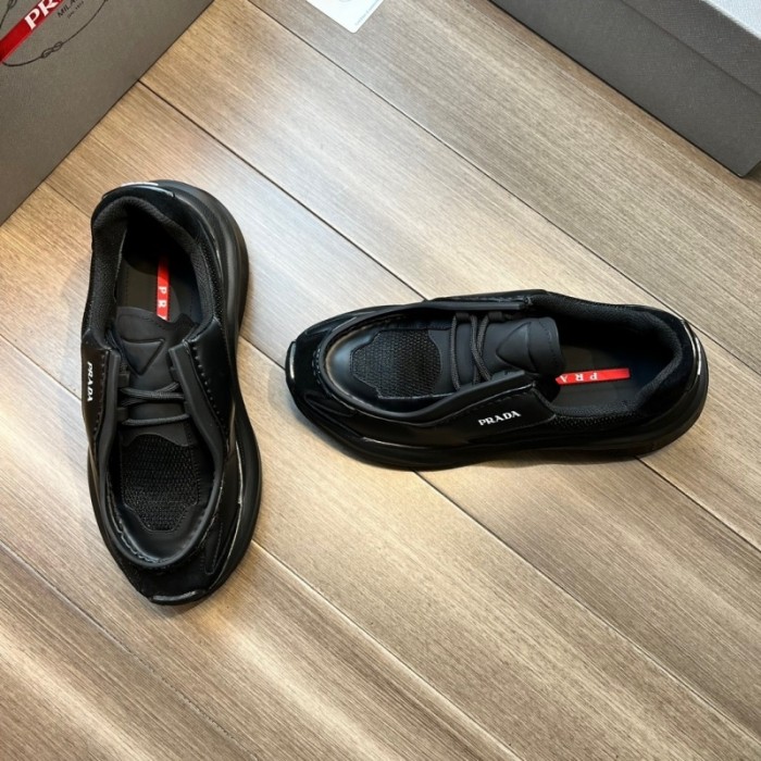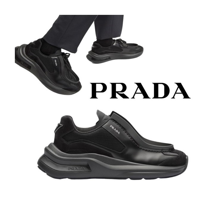 프라다 바이크 패브릭 스웨이드 엘리먼츠 브러쉬드 레더 스니커즈 블랙