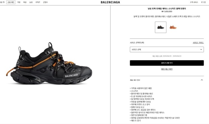 발렌시아가 트랙 트레일 레이스 스니커즈 블랙/오렌지 > 발렌시아가