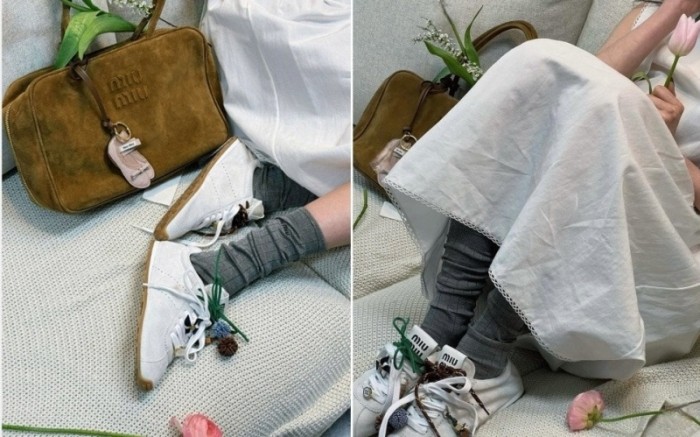 미우미우 여성 플룸 스웨이드 스니커즈 - 2 Color > 미우미우