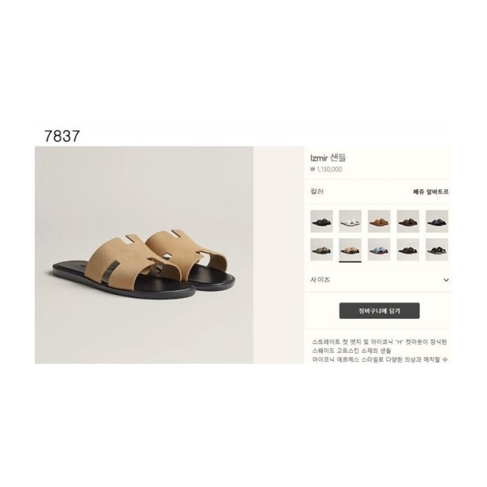 에르메스 남성 이즈미르 스웨이드 샌들 - 베이지 > 에르메스