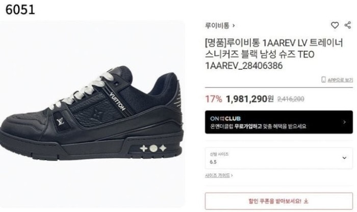 루이비통 LV 트레이너 맥시 스니커즈 - 블랙 > 루이비통