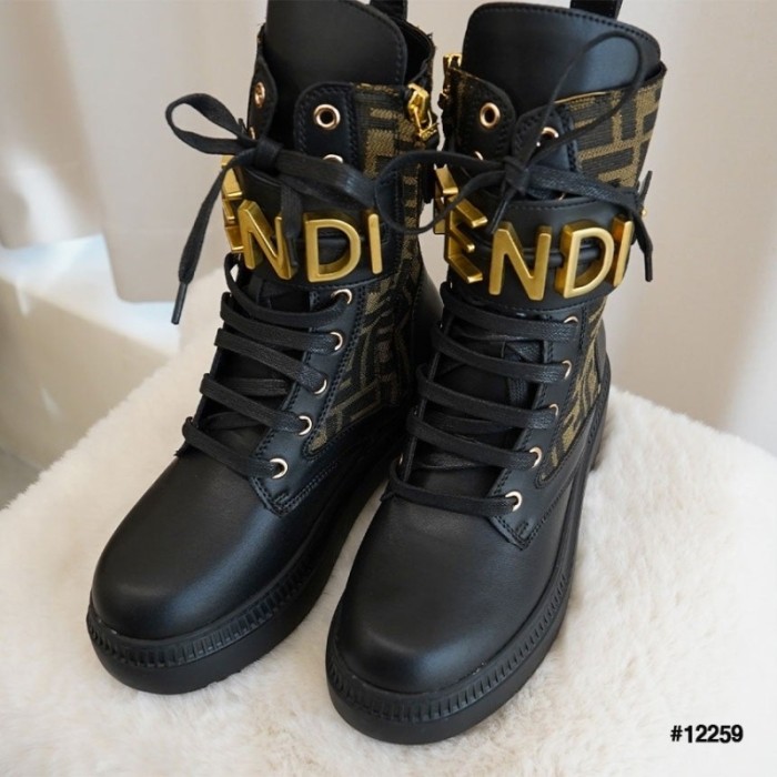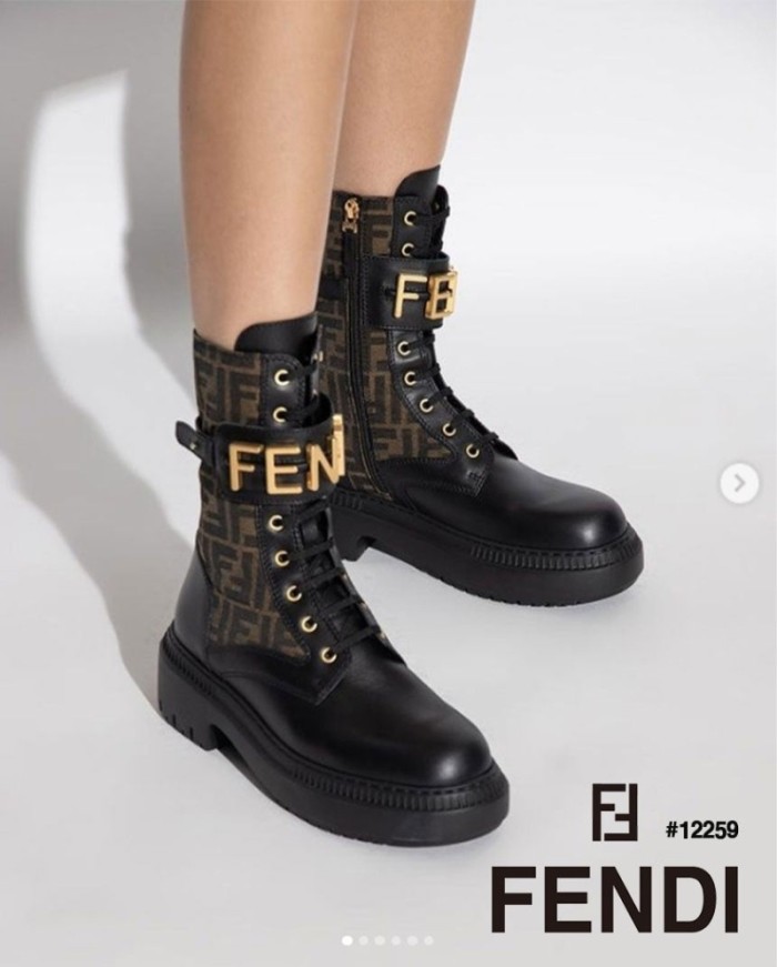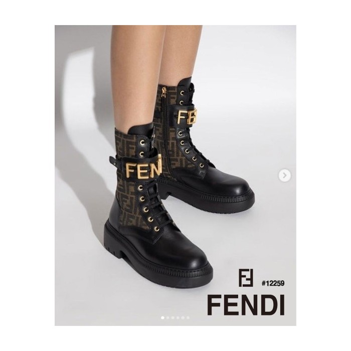 펜디 여성 블랙 가죽 바이커 부츠 > 펜디