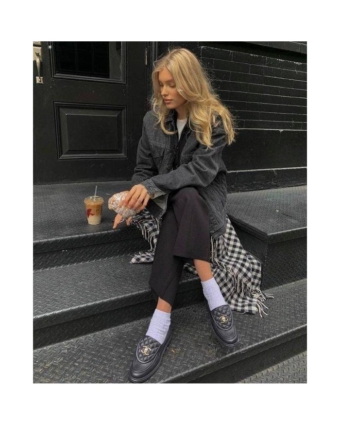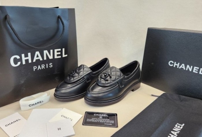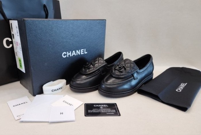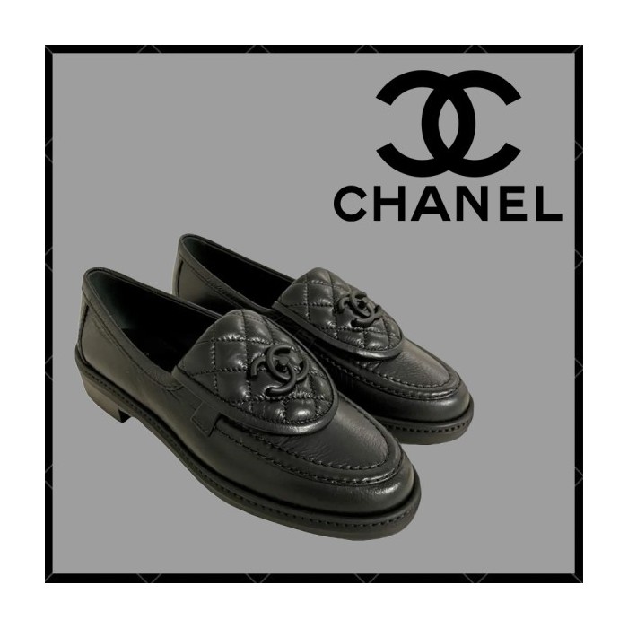 샤넬 블랙램 퀼티드 턴락 CC 로고 로퍼 (고급버전)