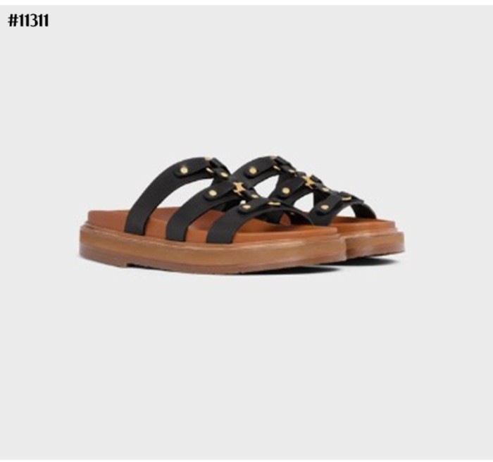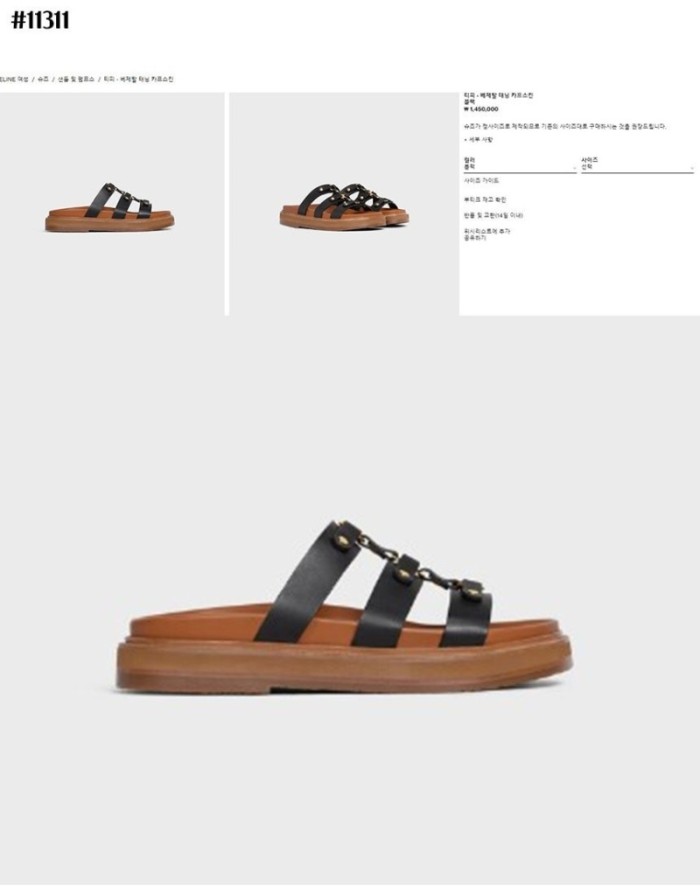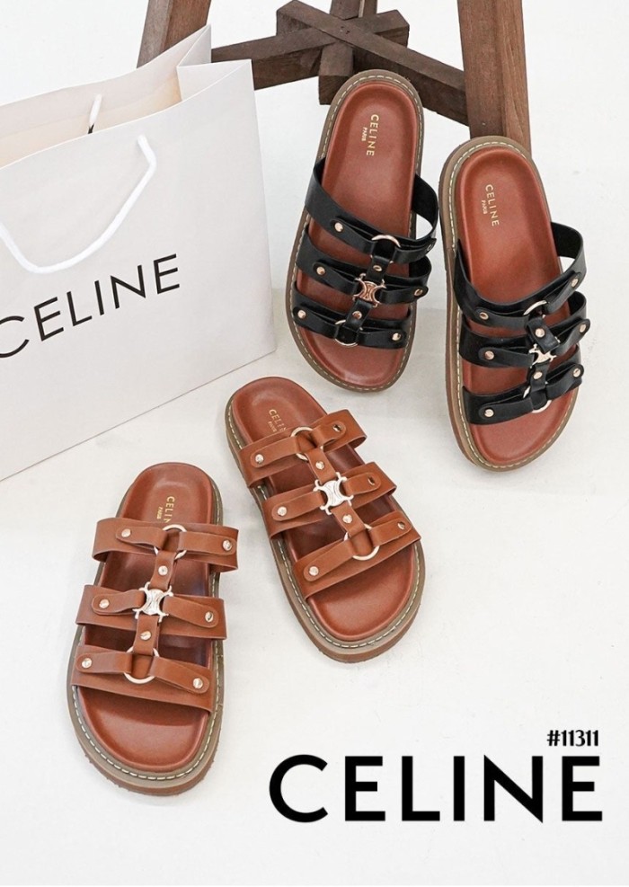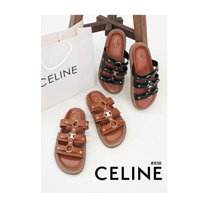 셀린느 티피 슬라이드 - 베제탈 태닝 카프스킨 탠 슬리퍼 샌들 > 셀린느