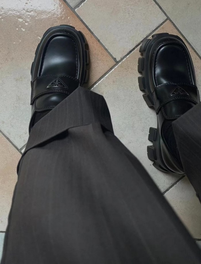 프라다 모놀리스 브러쉬드 레더 로퍼 블랙 -해외배송- > 남성 슈즈