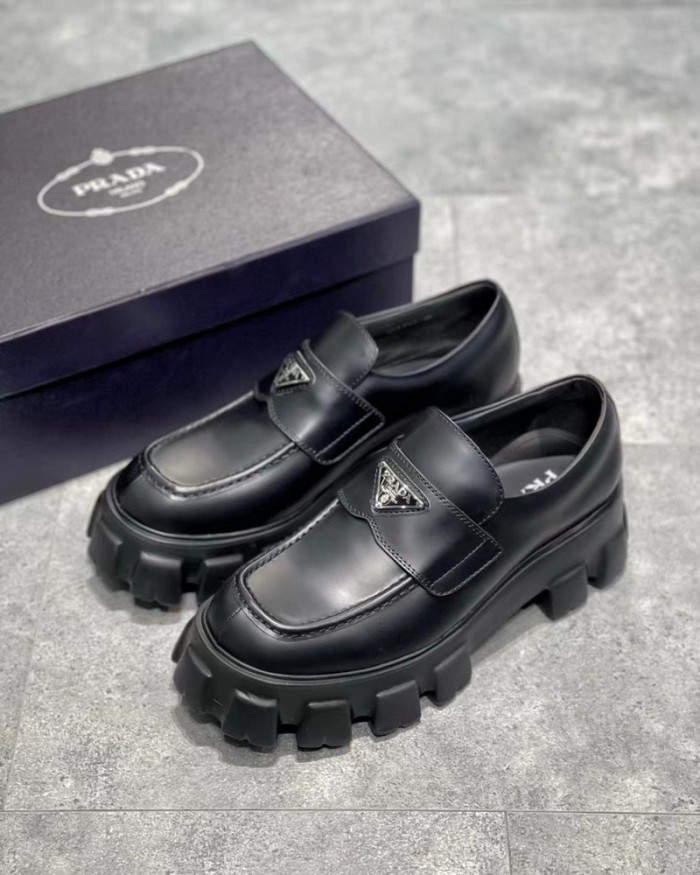 프라다 모놀리스 브러쉬드 레더 로퍼 블랙 -해외배송-