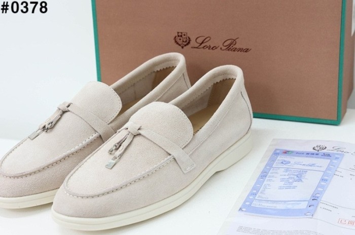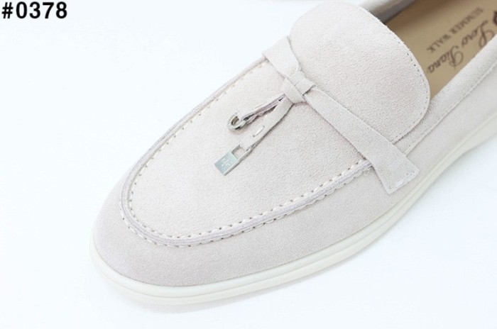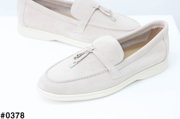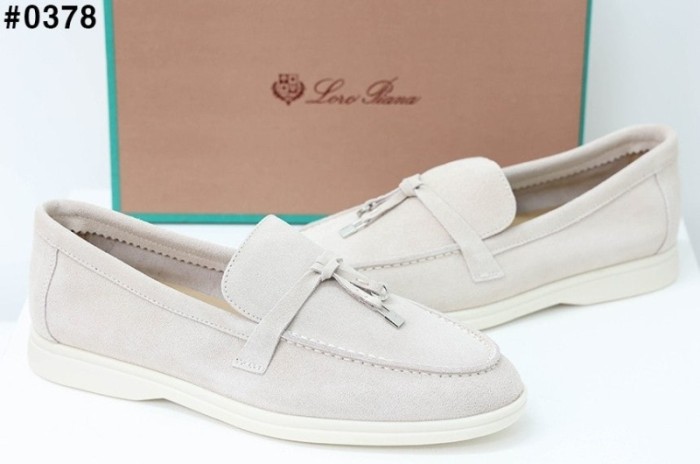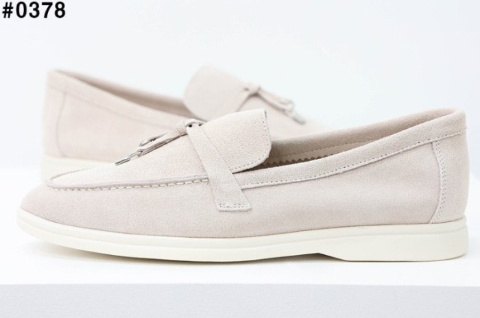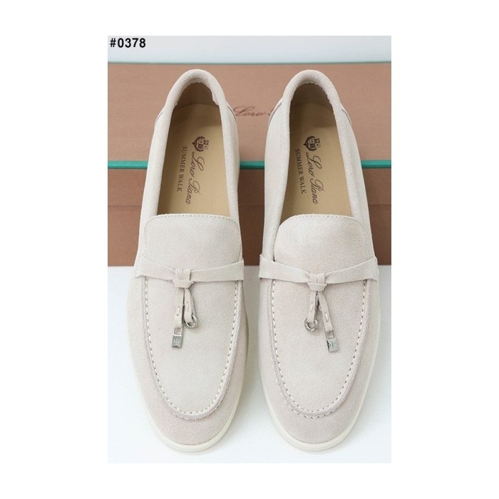로로피아나 썸머 참스 워크 스웨이드 로퍼 - 아이보리