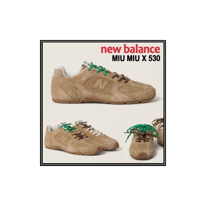 뉴발란스 x 미우미우 530 스웨이드 메쉬 스니커즈 에크루