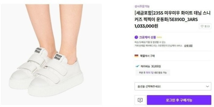 미우미우 데님 벨크로 스니커즈 - 2 Color