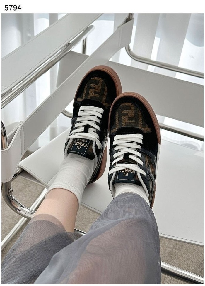펜디 매치 블랙 스웨이드 캔버스 로우탑