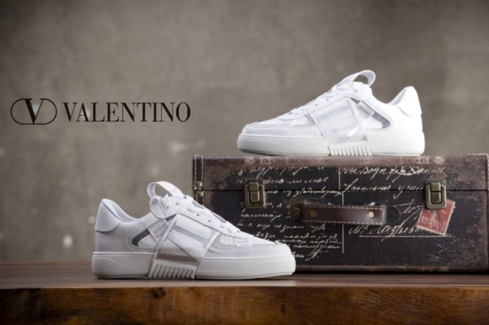 발렌티노 VLTN로고 밴딩 로우탑 스니커즈 화이트,그레이