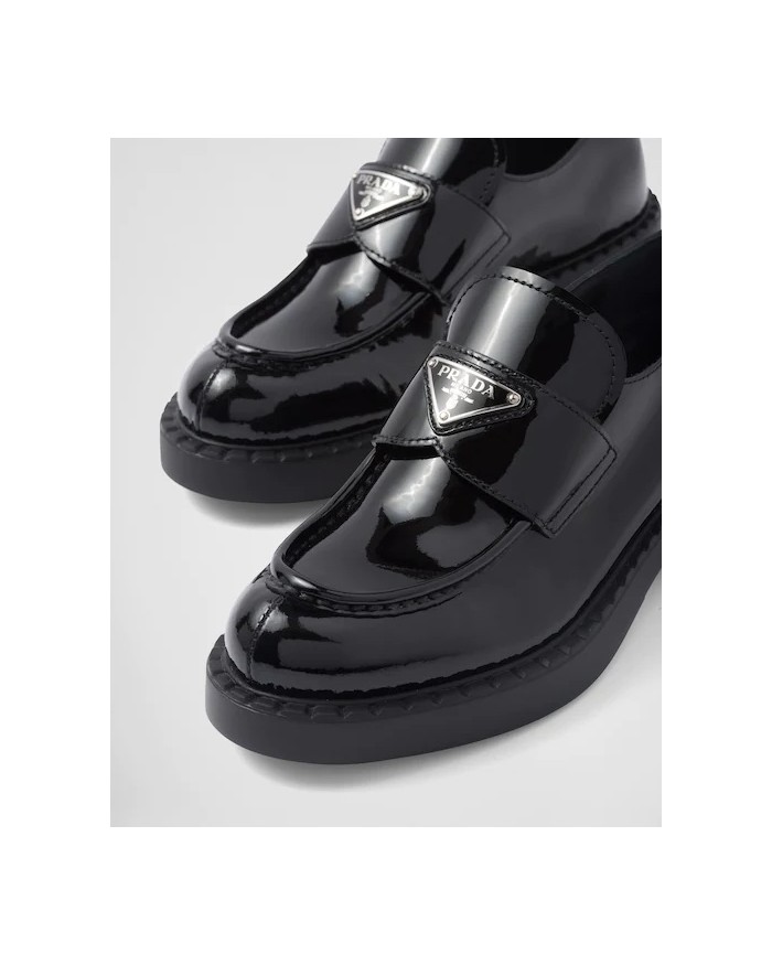프라다 초콜릿 하이힐 브러쉬드 로퍼 블랙 > 남성 슈즈