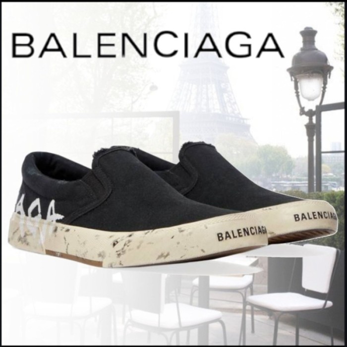 발렌시아가 파리 슬립온 그래피티 스니커즈 - 블랙 > 발렌시아가