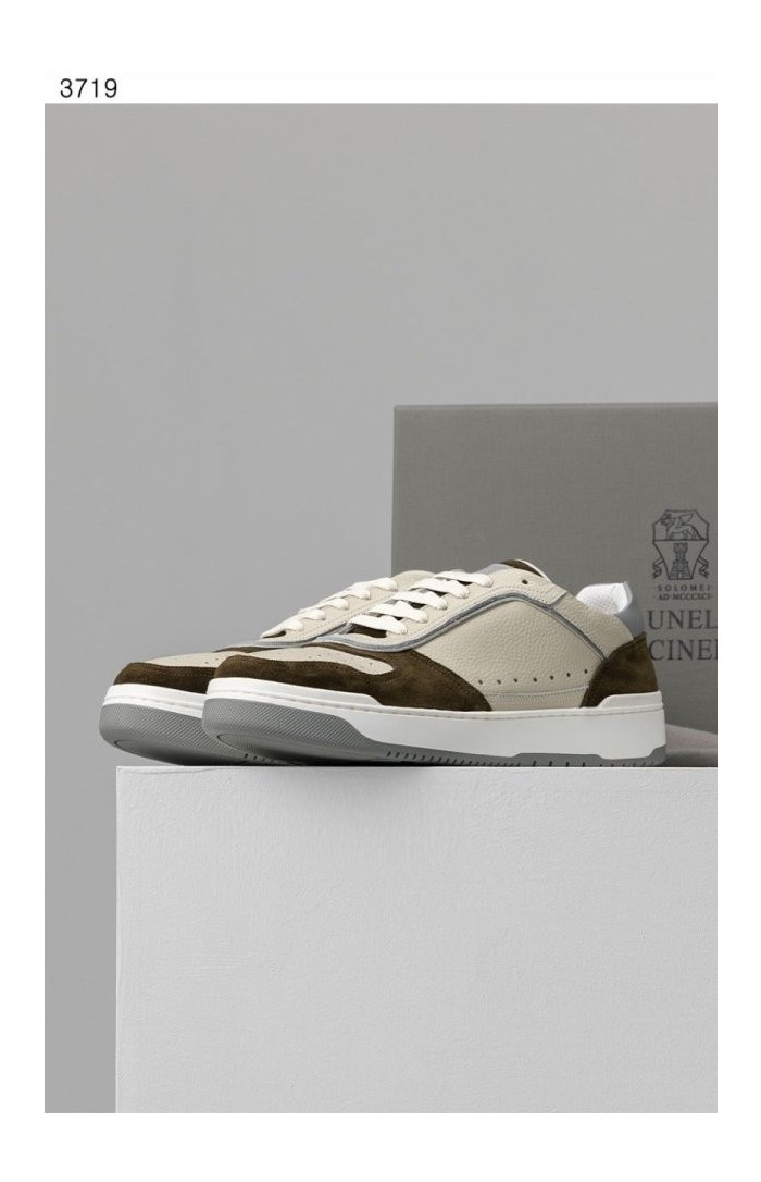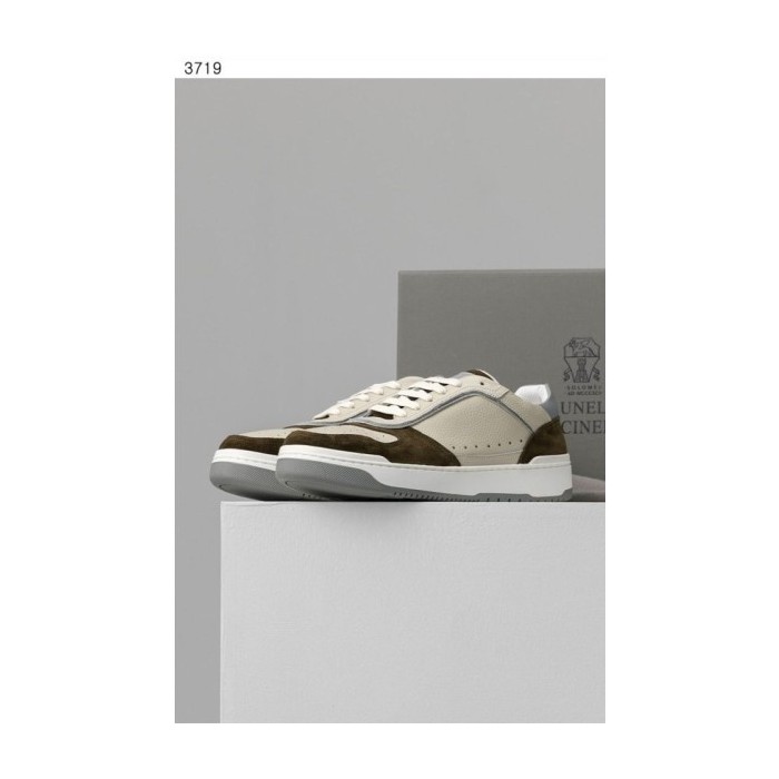 브루넬로쿠치넬리 카프스킨 스웨이드 배스킷 스니커즈 - 카키 > 스니커즈