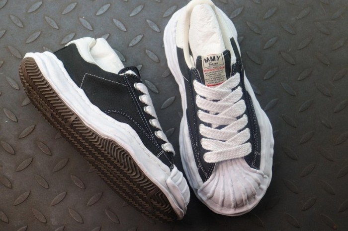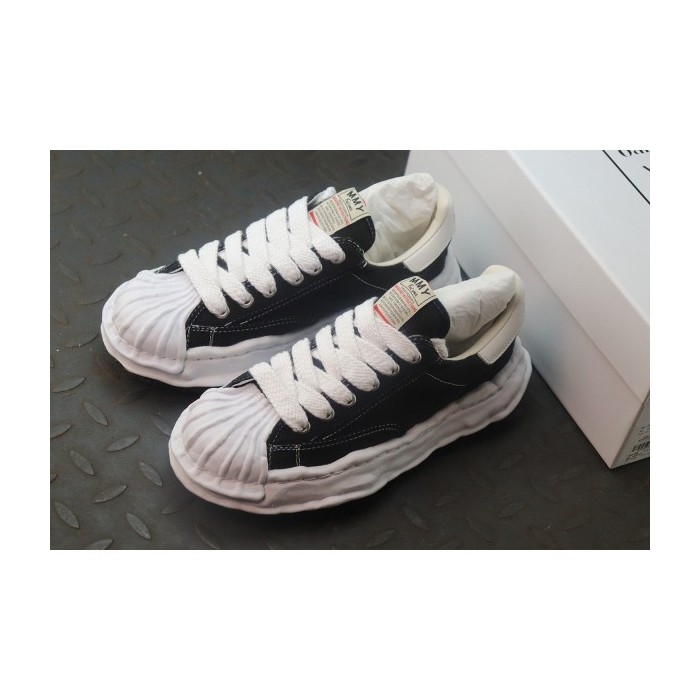 메종 미하라 야스히로 블레이키 OG 솔 캔버스 로우탑 스니커즈 블랙 화이트