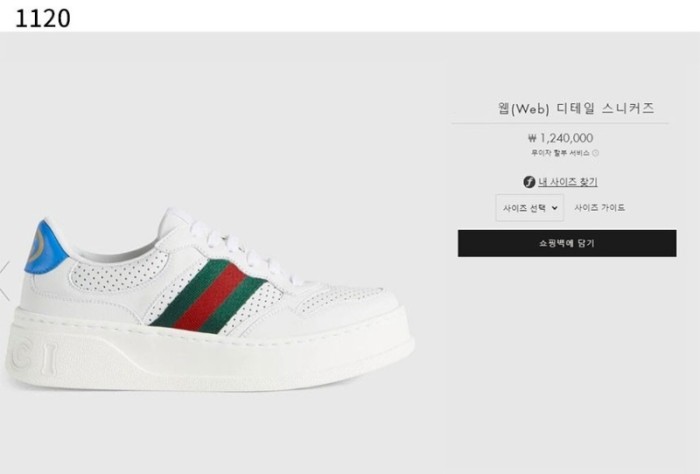 구찌 웹(WED) 디테일 레더 스니커즈 > 구찌