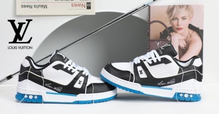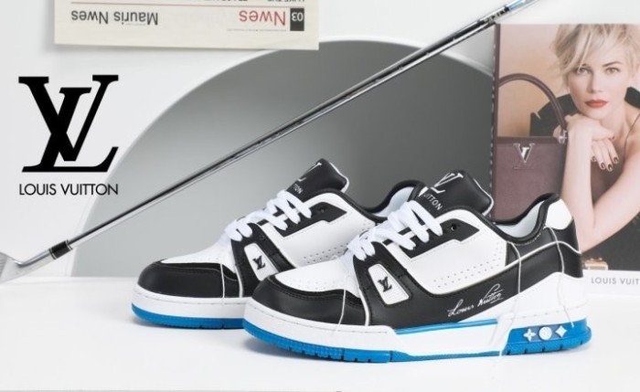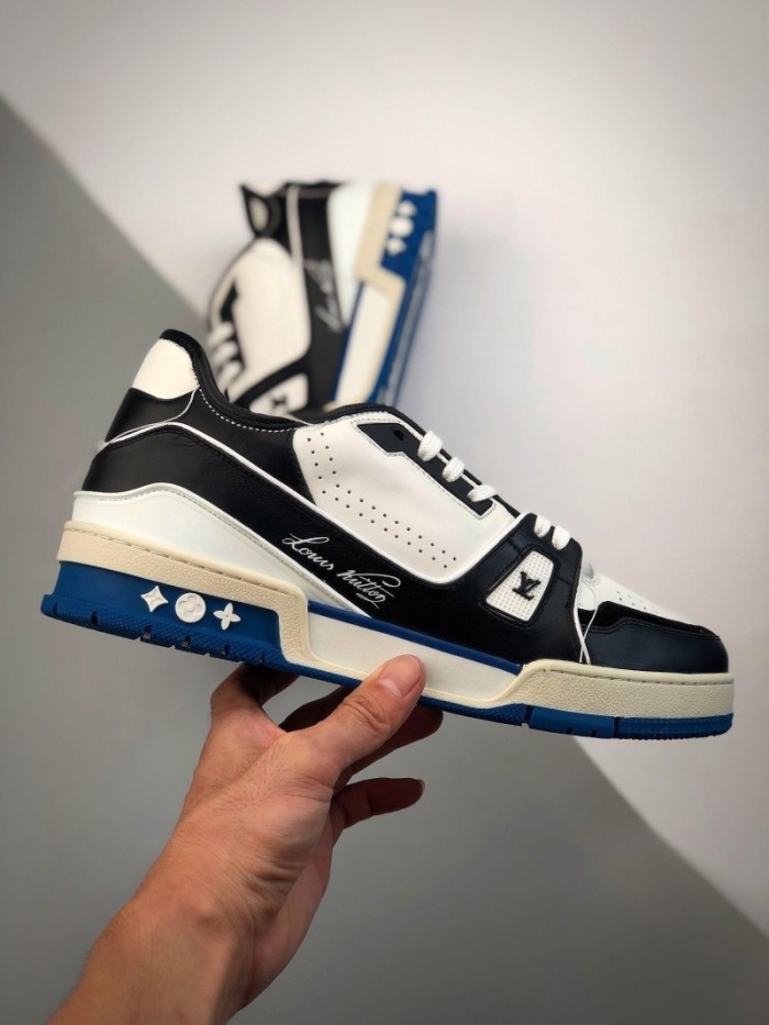 루이비통 LV 트레이너 스니커즈 화이트 블랙 블루 > 루이비통