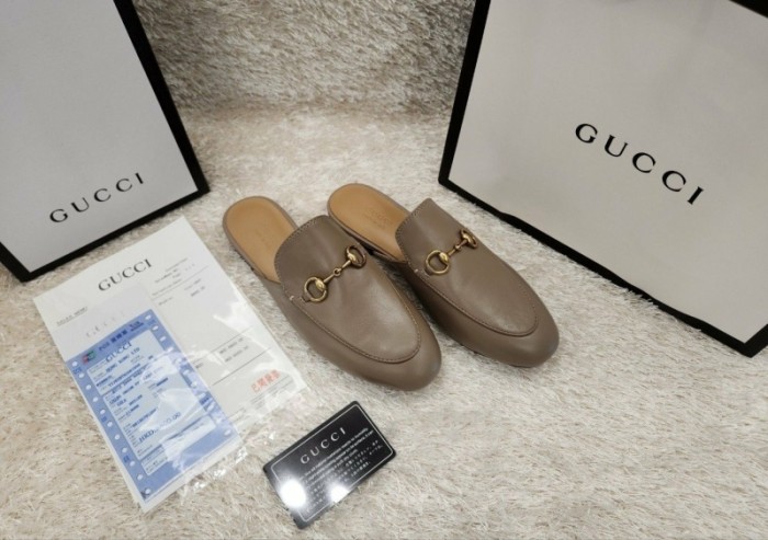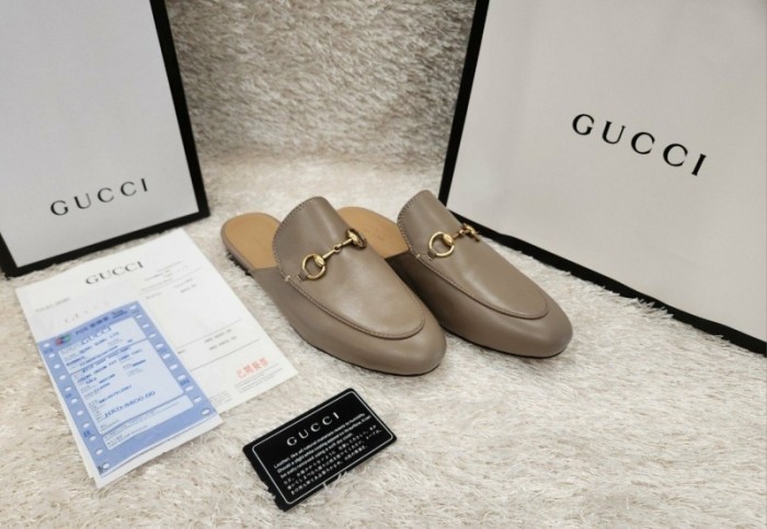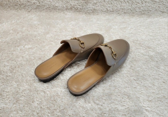 구찌 프린스타운 레더 홀스빗 뮬 -베이지