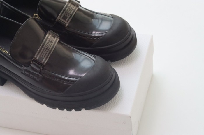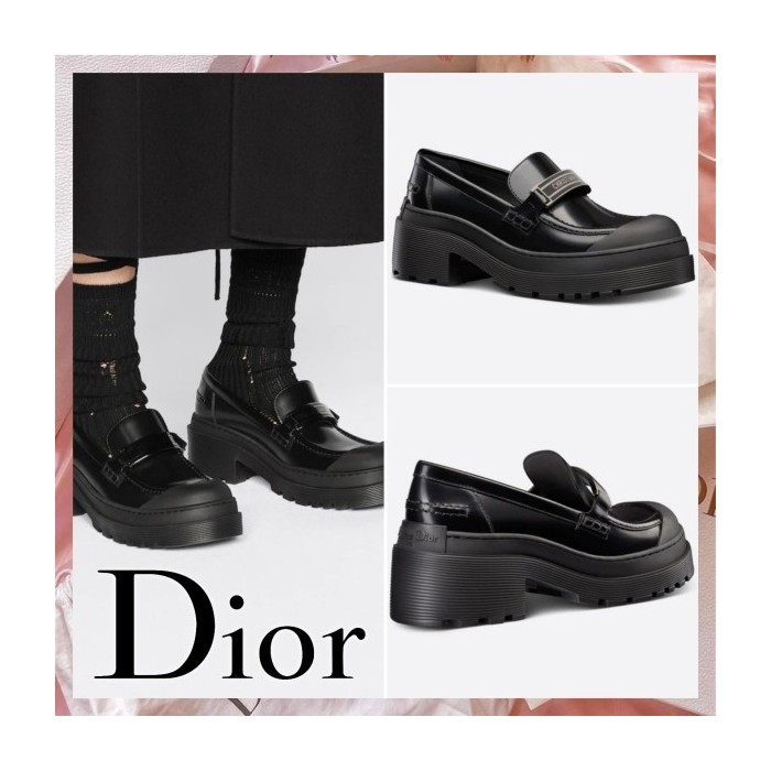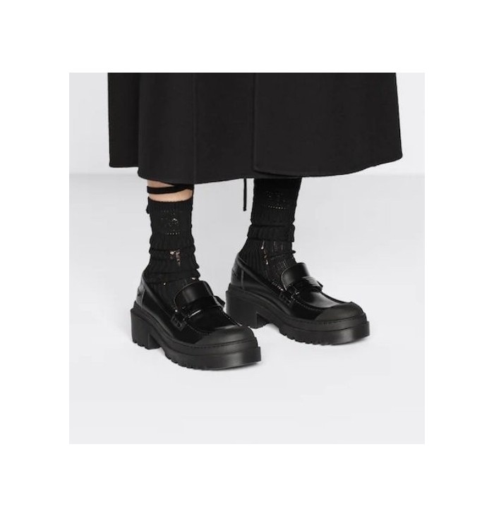 디올 코드 로퍼 브러쉬드 카프스킨 블랙