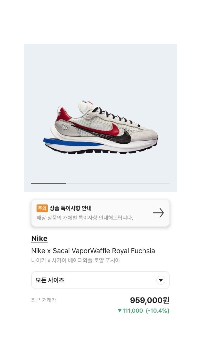 나이키 x 사카이 베이퍼와플 흰빨 > 남성 슈즈