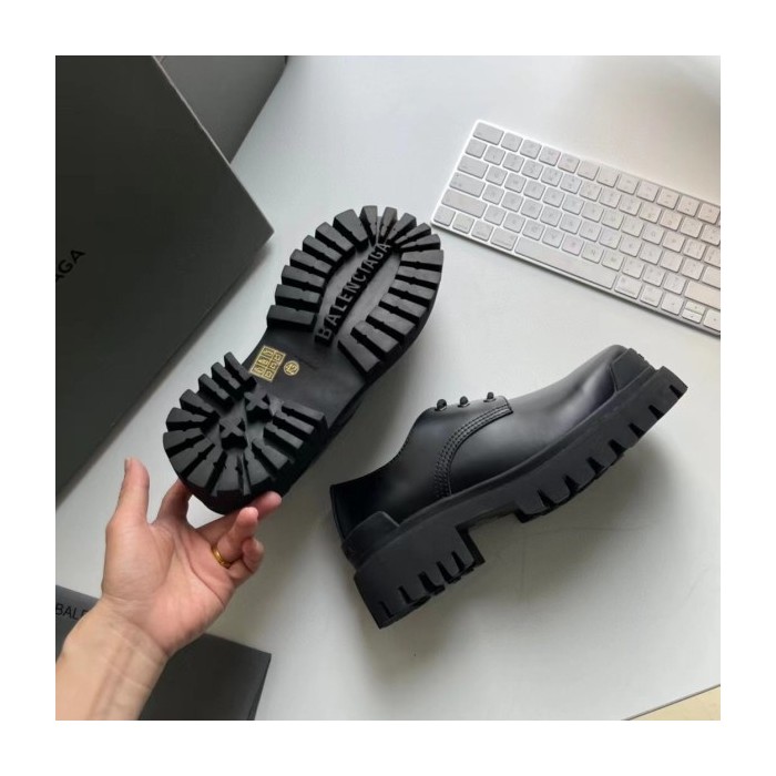 발렌시아가 스트라이크 청키 솔 가죽 더비슈즈 블랙 - 해외배송