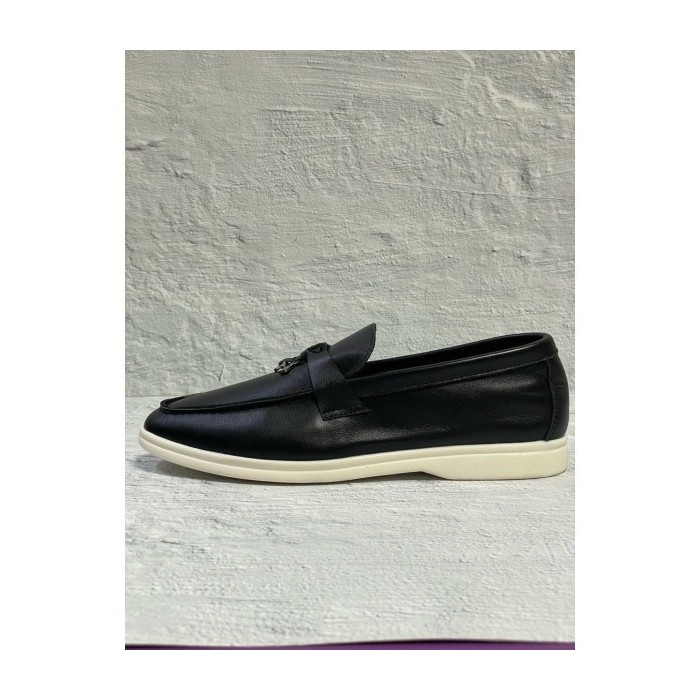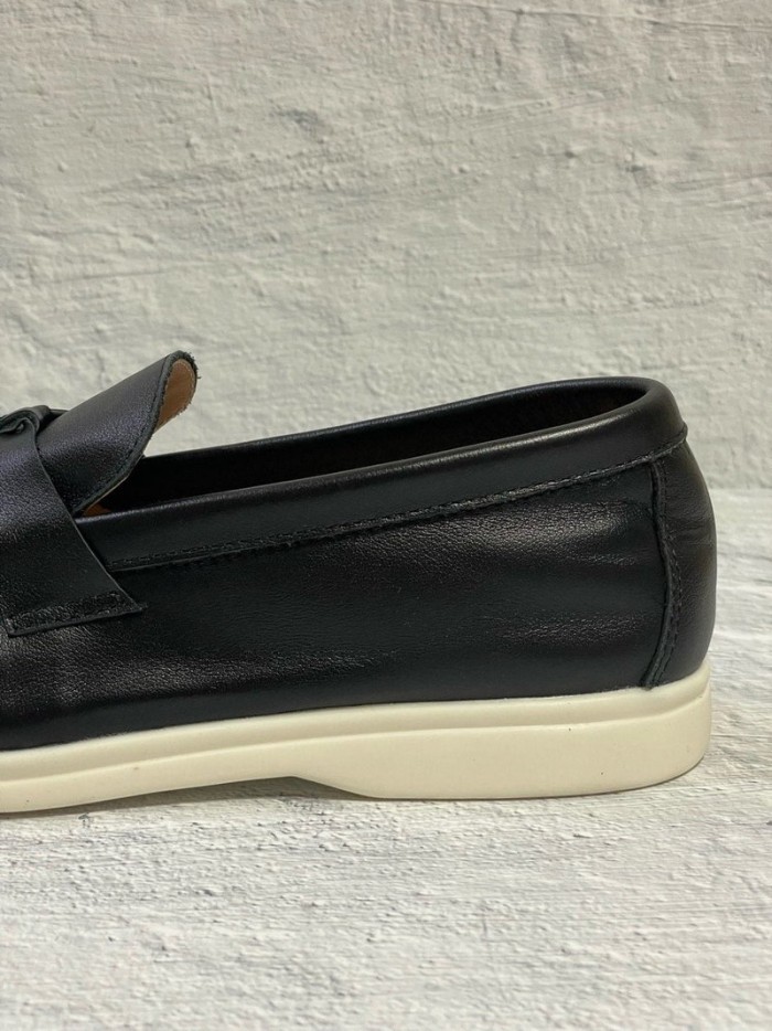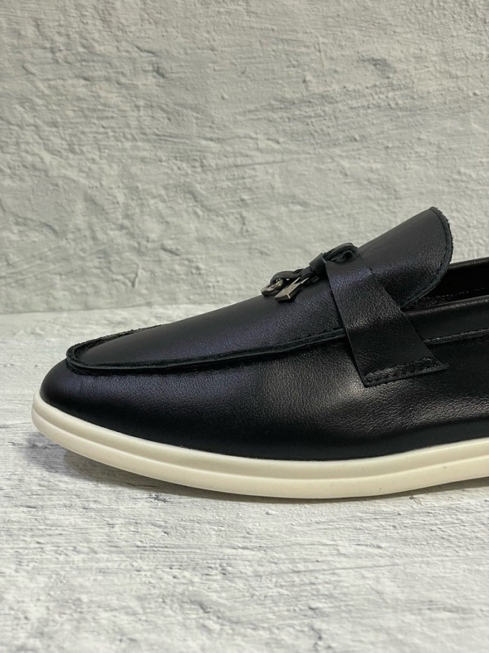 로로피아나 참스 레더 로퍼 - 블랙