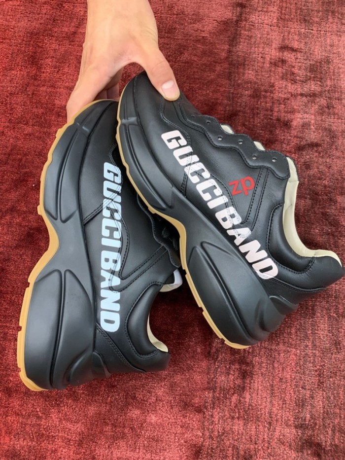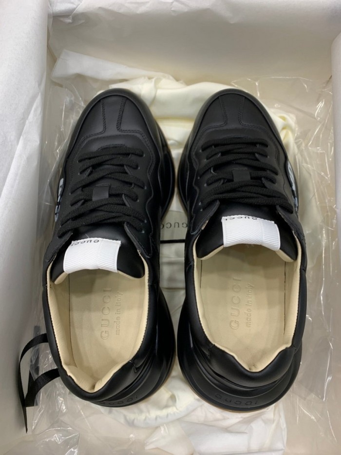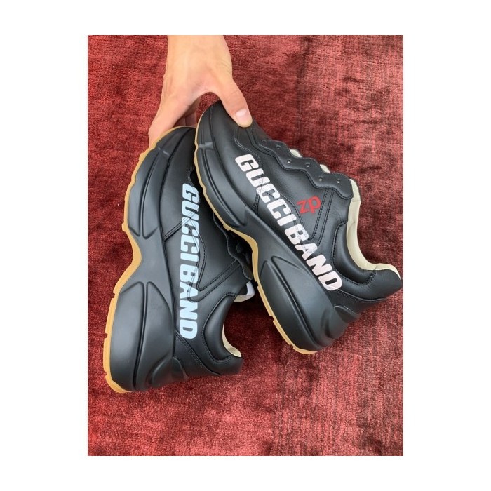 구찌 라이톤 레더 밴드 스니커즈 블랙