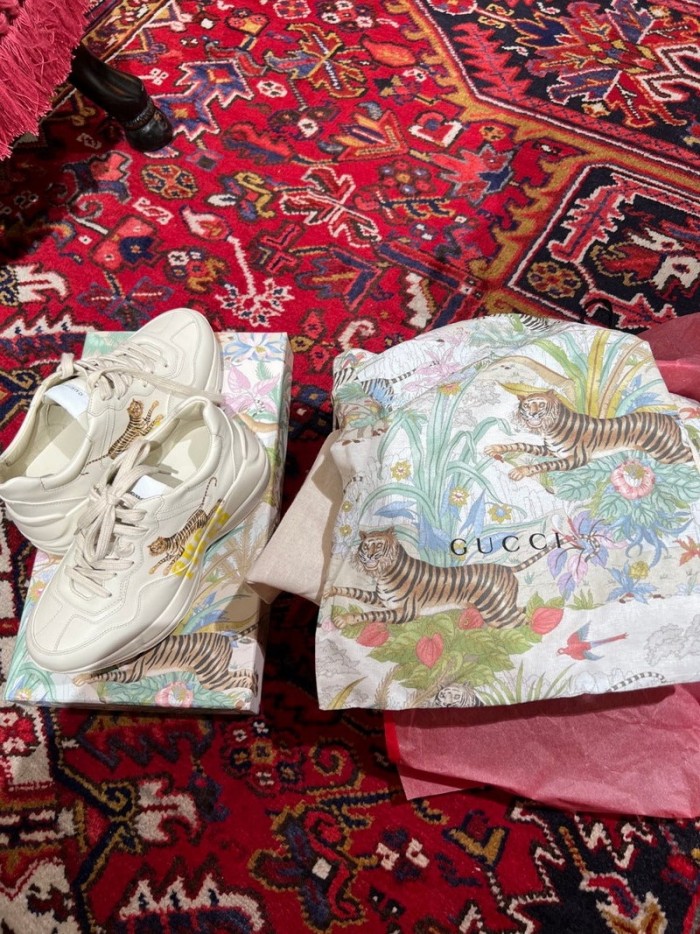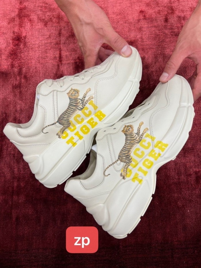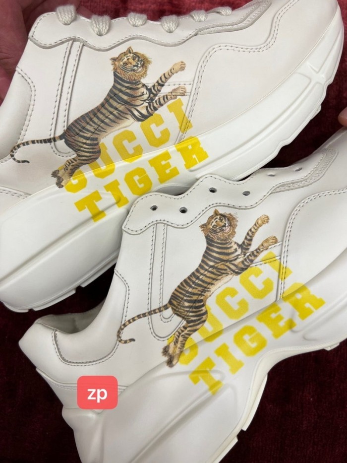 구찌 라이톤 레더 스니커즈 타이거