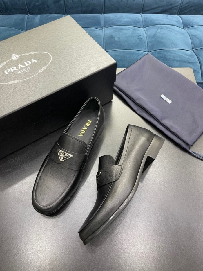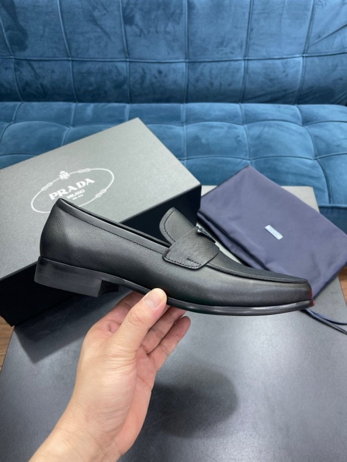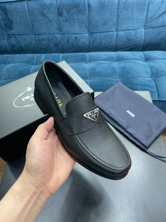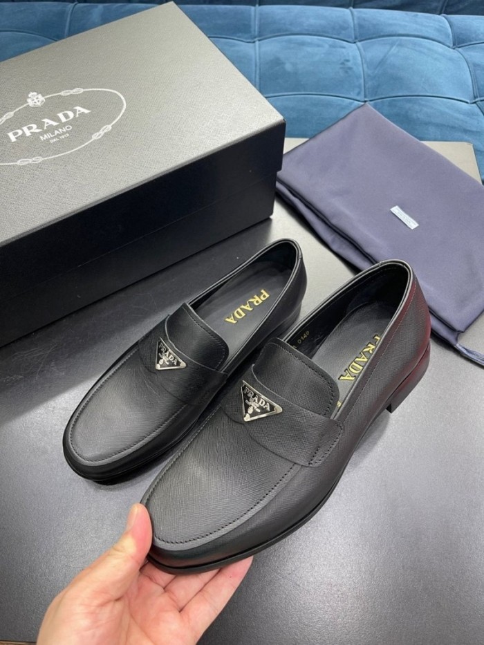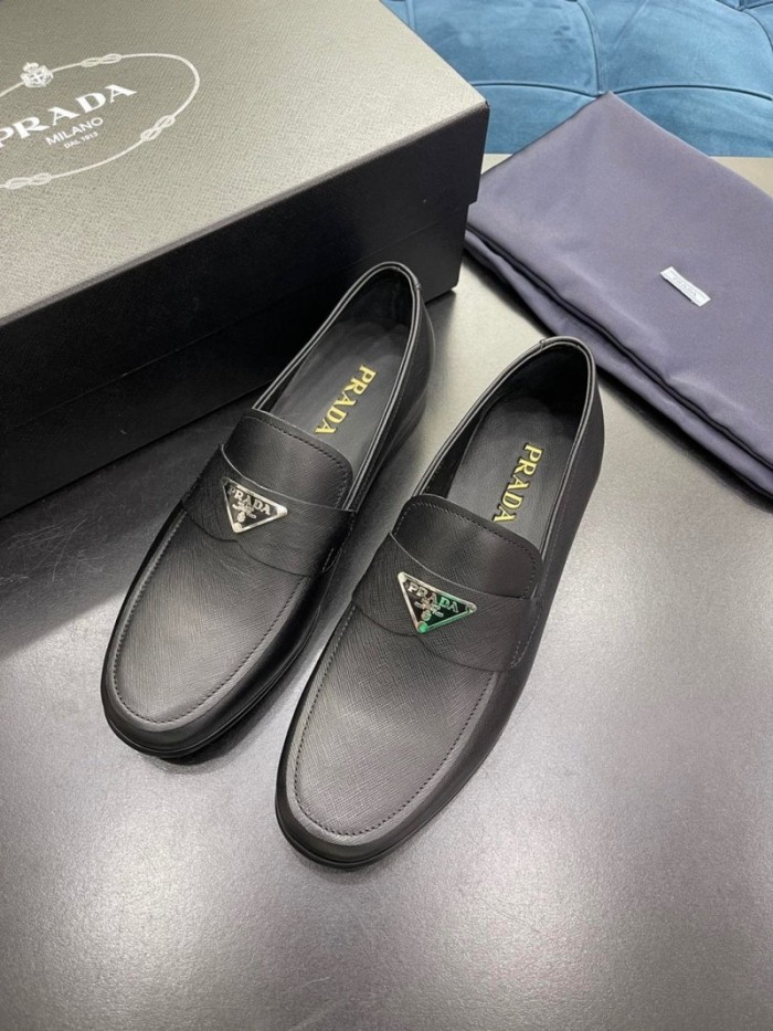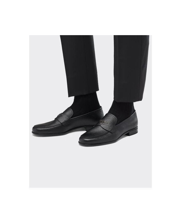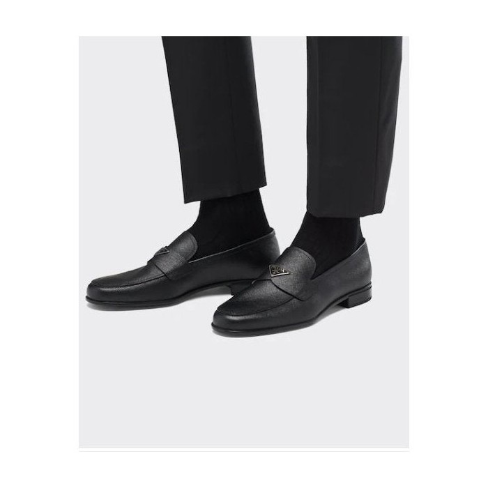 프라다 삼각 스틸로고 사피아노 가죽로퍼