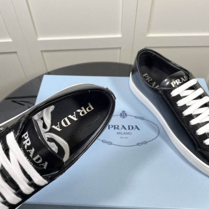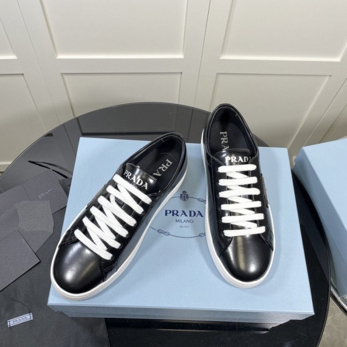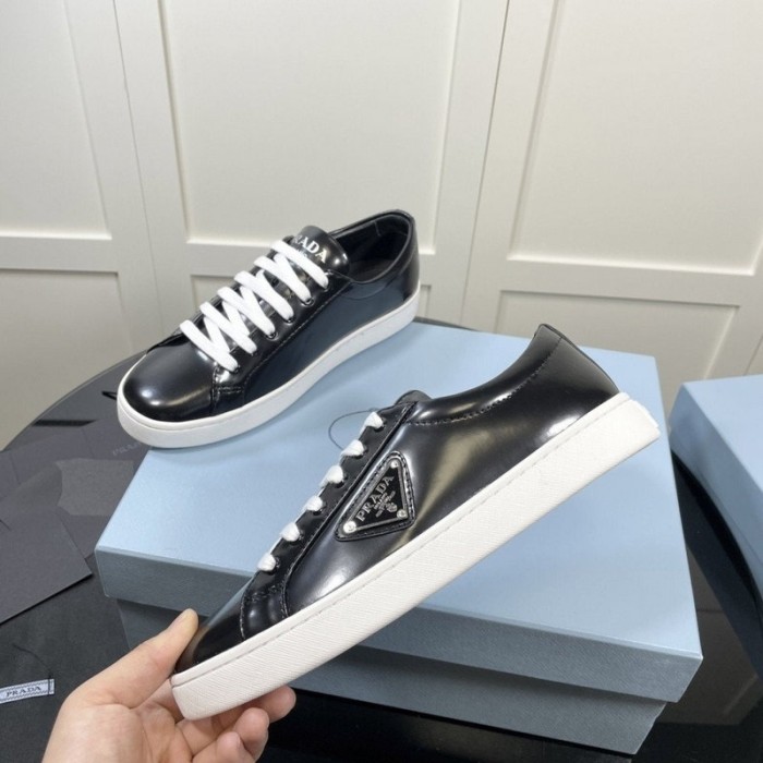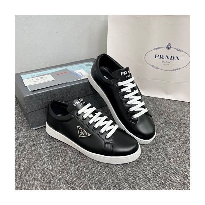 프라다 삼각로고 브러쉬드 래더 스니커즈 (블랙)