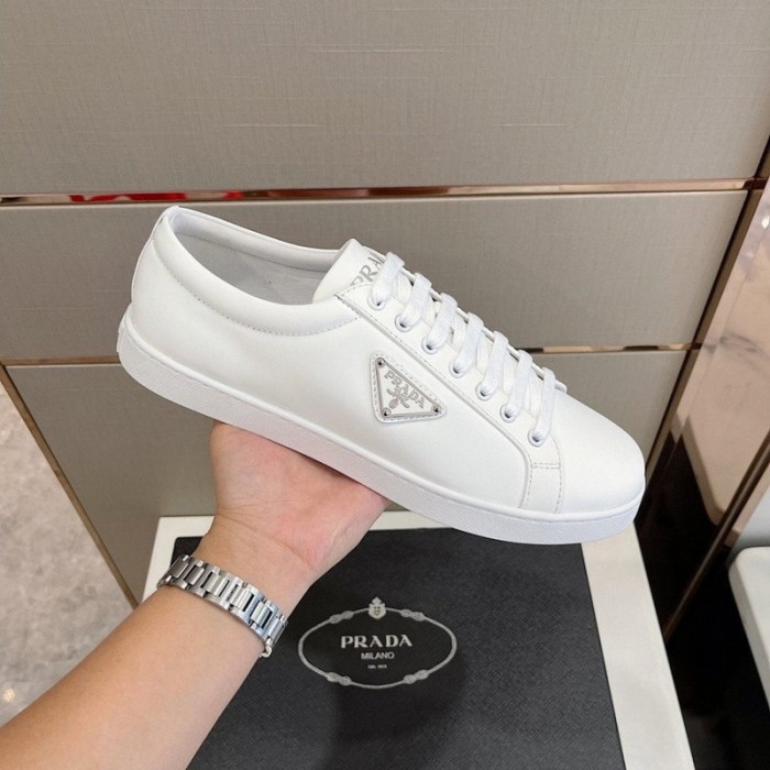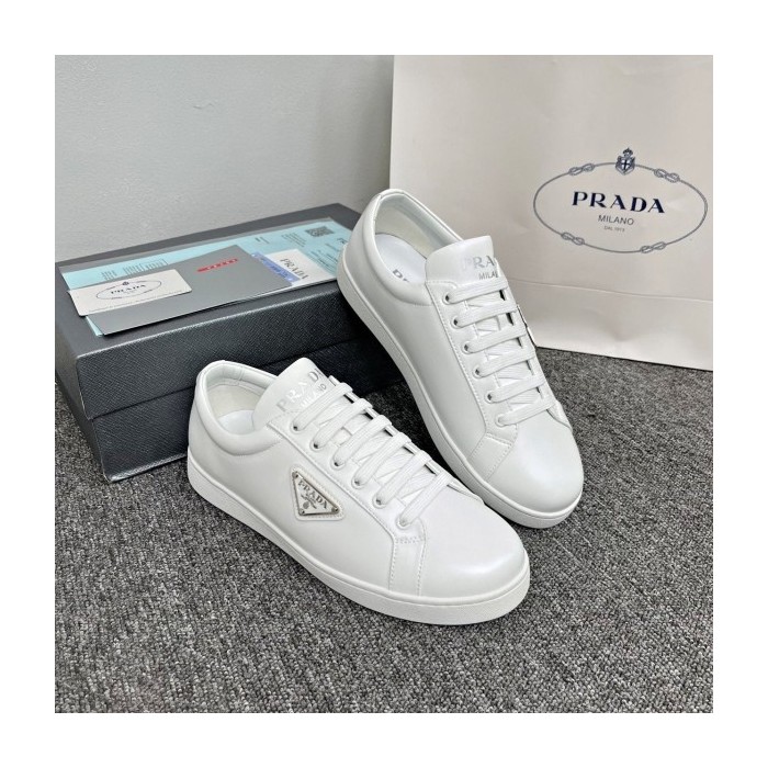 프라다 삼각로고 브러쉬드 래더 스니커즈 (화이트)