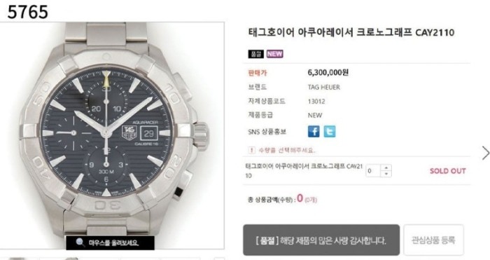 태그호이어 수입고급 아쿠아레이서 크로노그래프 (리뷰5건)